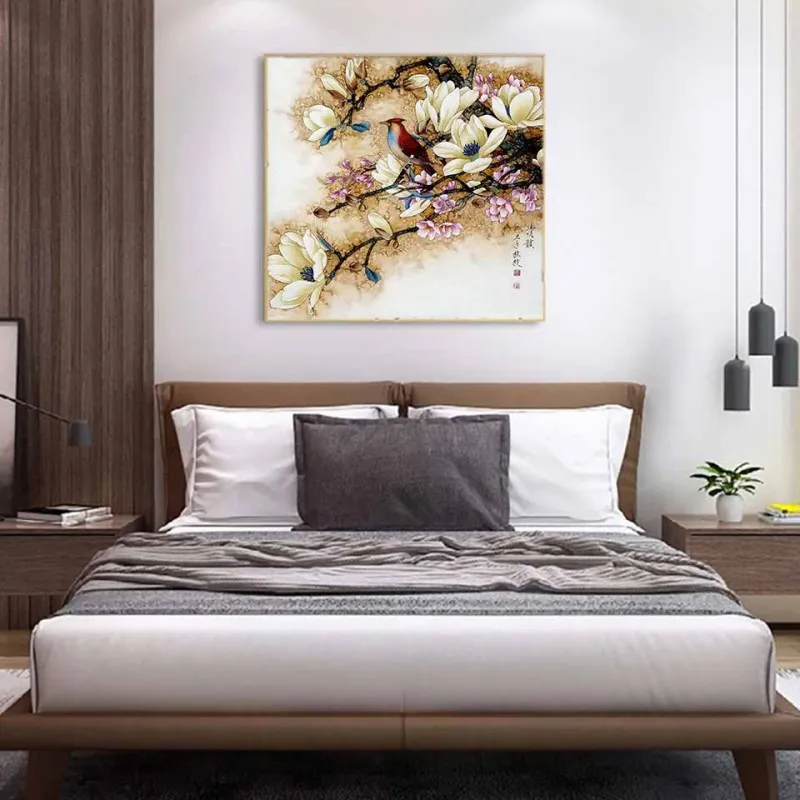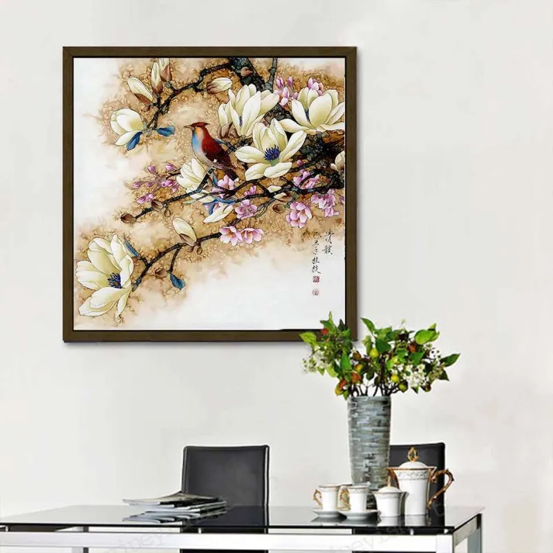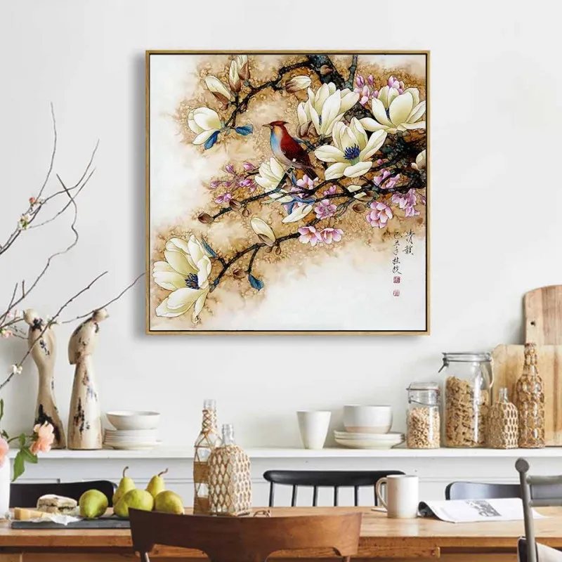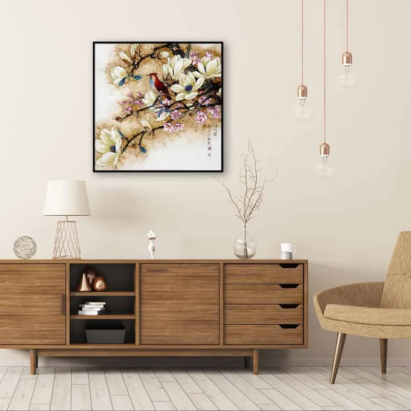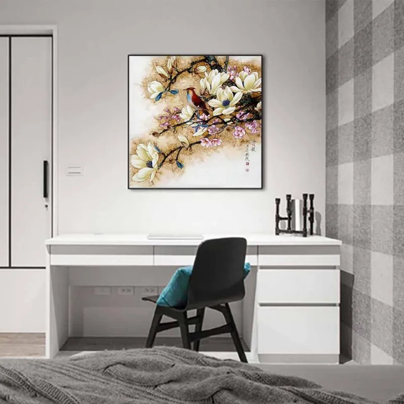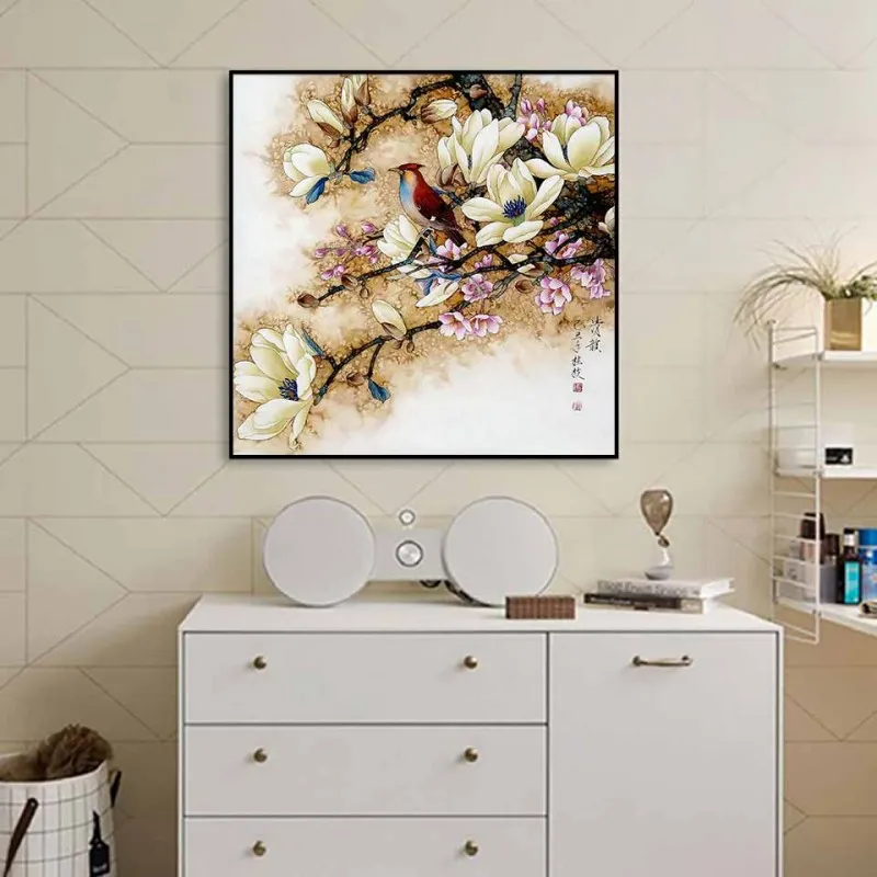 Tranh Chú Chim Đậu Trên Cành Hoa