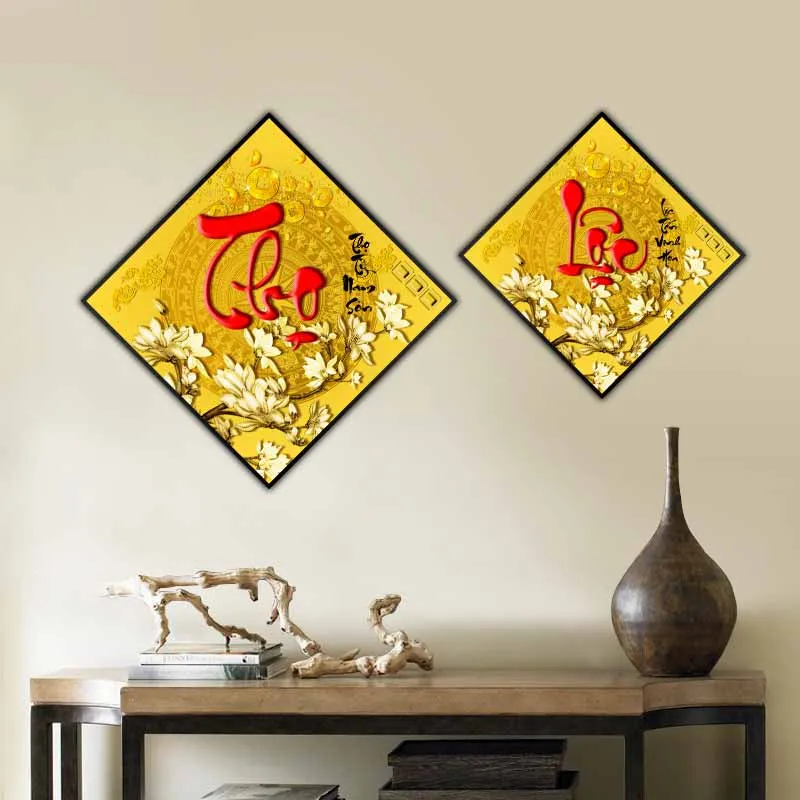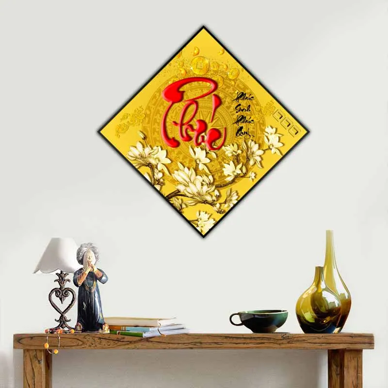 Tranh chữ Phúc Lộc Thọ và hoa mộc lan