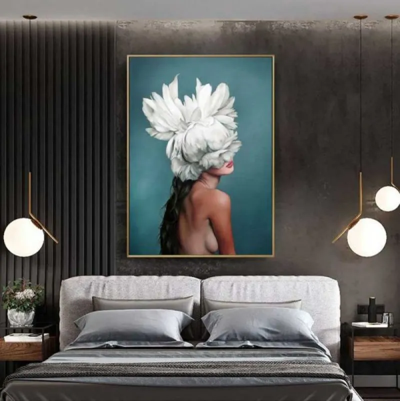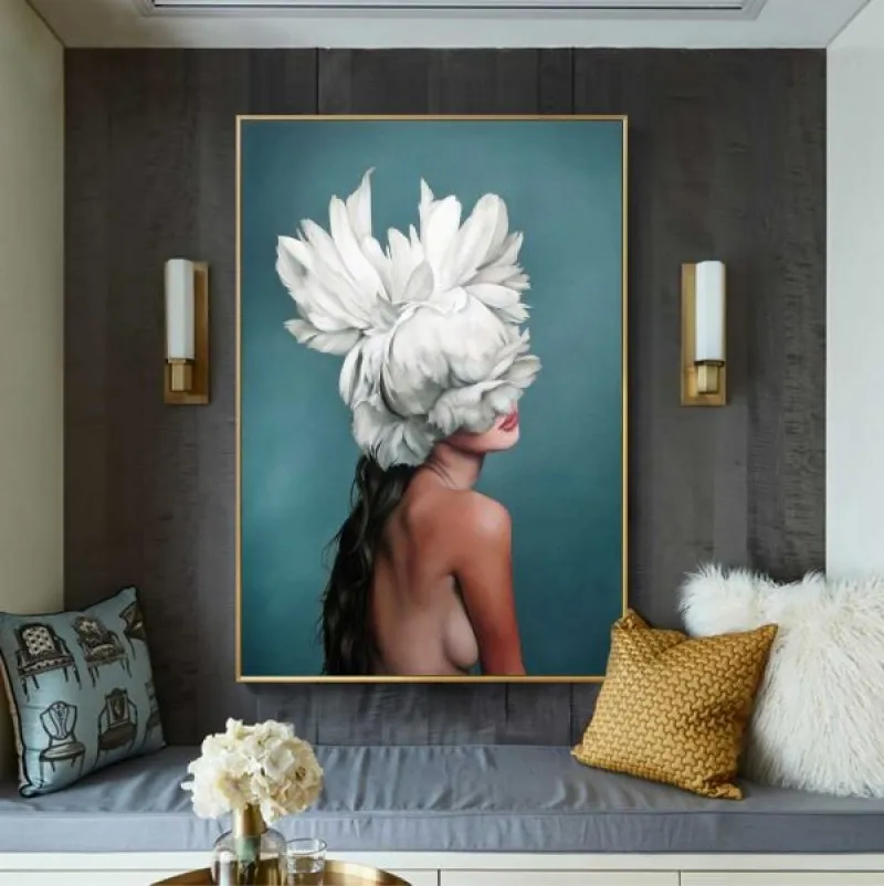 Tranh cô gái là 1 trong hàng loạt các thể loại tranh nude với các kiểu che mặt bằng những bông hoa to hay bằng những bộ lông chim thay cho nón mũ. Những bức tranh che mặt luôn gợi cho người xem sự tò mò.