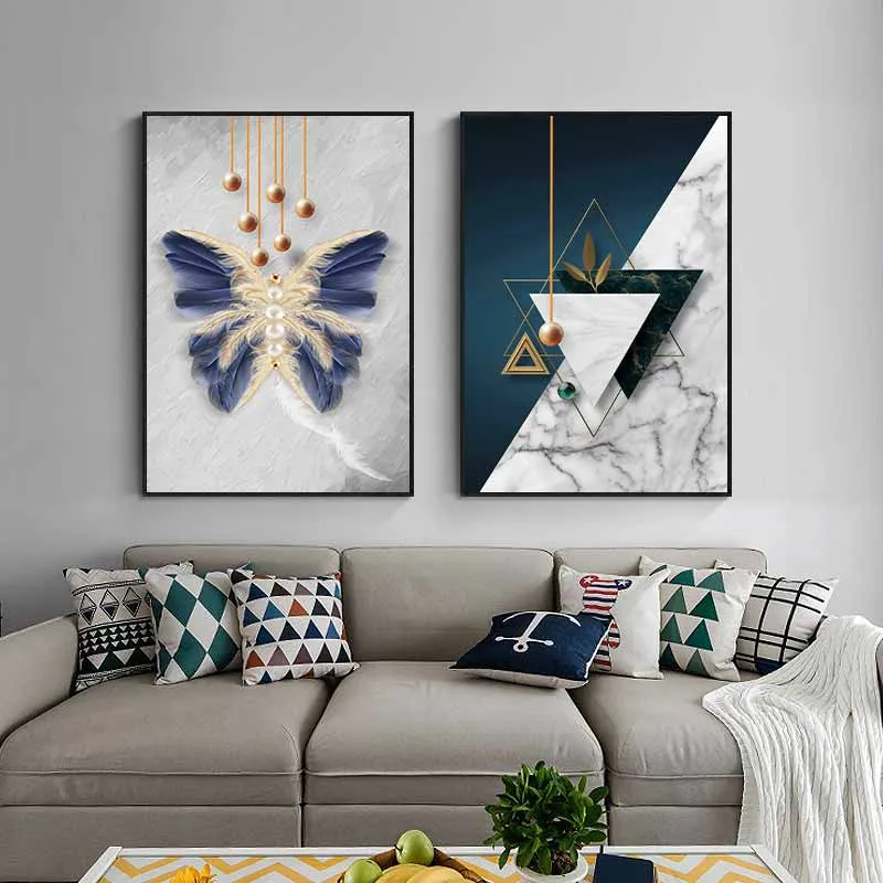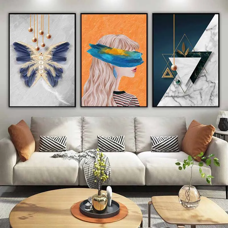 Tranh cô gái, tranh con bướm và tranh các hình tam giác trừu tượng