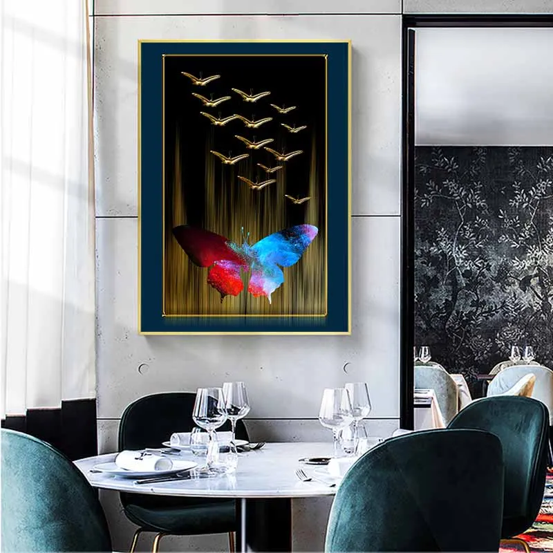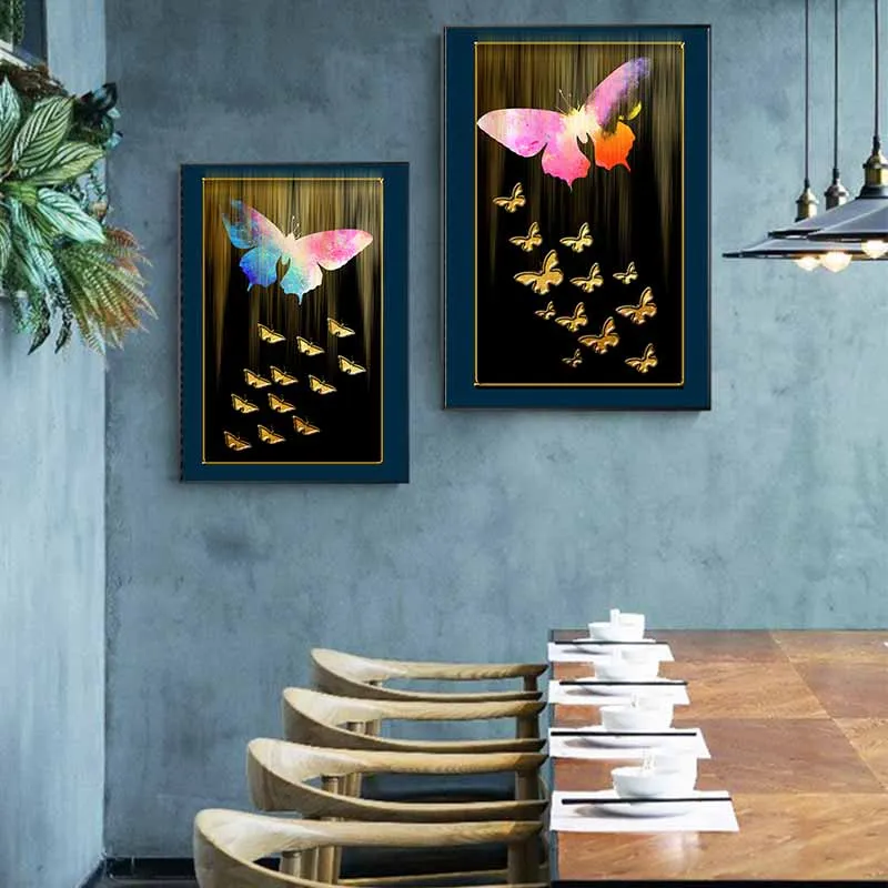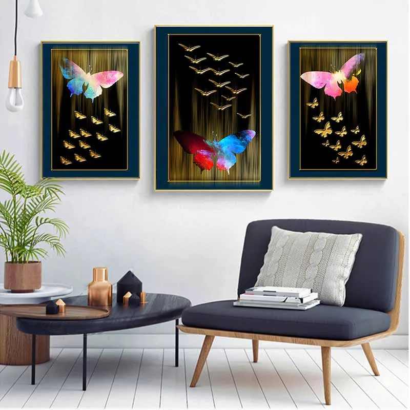 Tranh đàn bướm trừu tượng trên nền đen và vàng