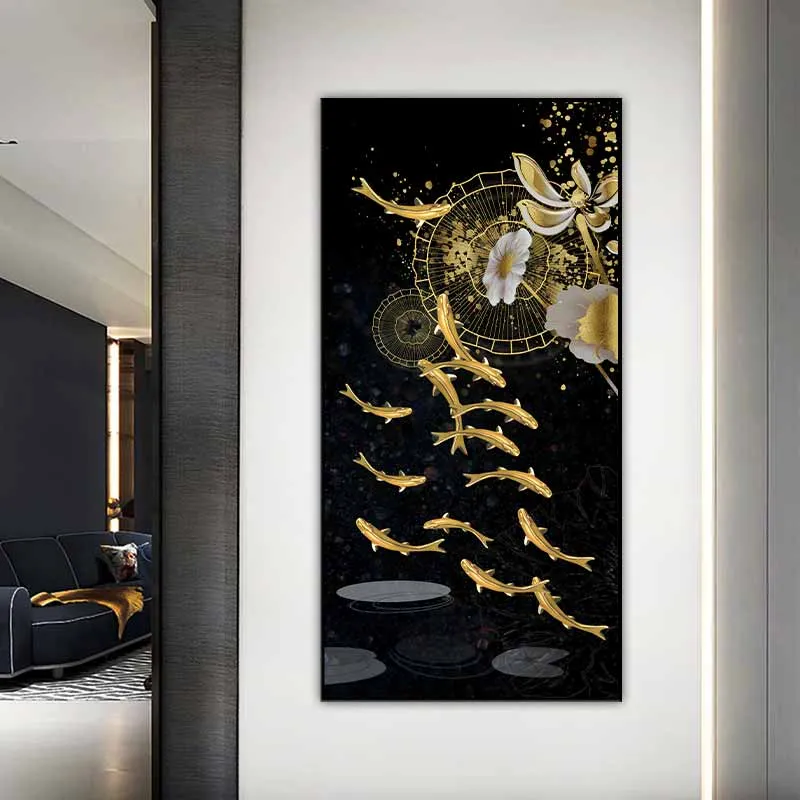 Tranh đàn cá chép và những hoa lá sen trừu tượng