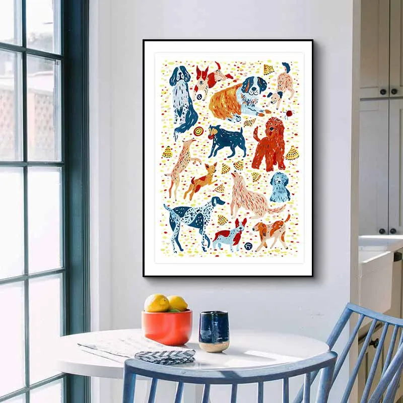Tranh đàn chó đang chơi đùa