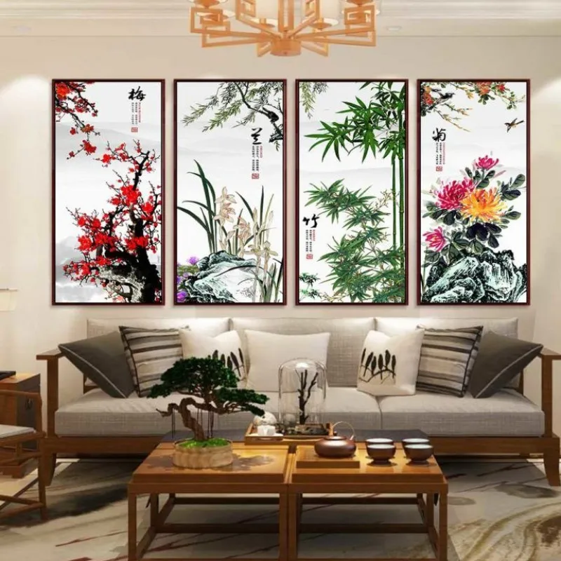 - Tranh được in trên chất liệu vải Canvas, mực dầu 6 màu nhập khẩu cho màu sắc trung thực và cực kỳ bền màu, không cần mặt kính bảo vệ, có thể vệ sinh bằng khăn ướt.