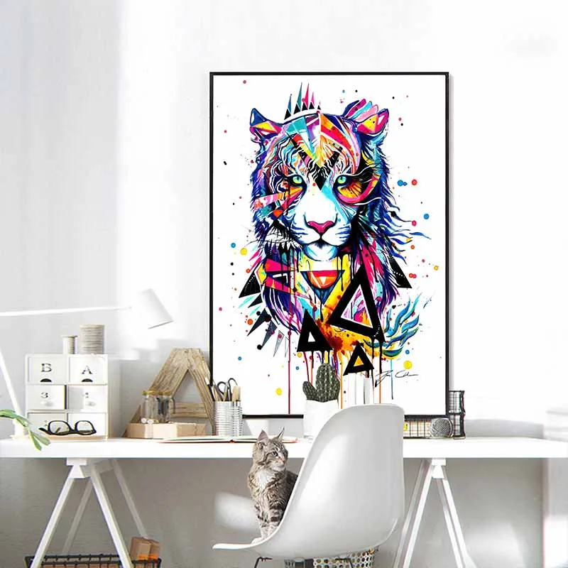 Tranh đầu hổ trừu tượng hiện đại nhiều màu