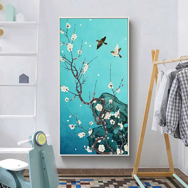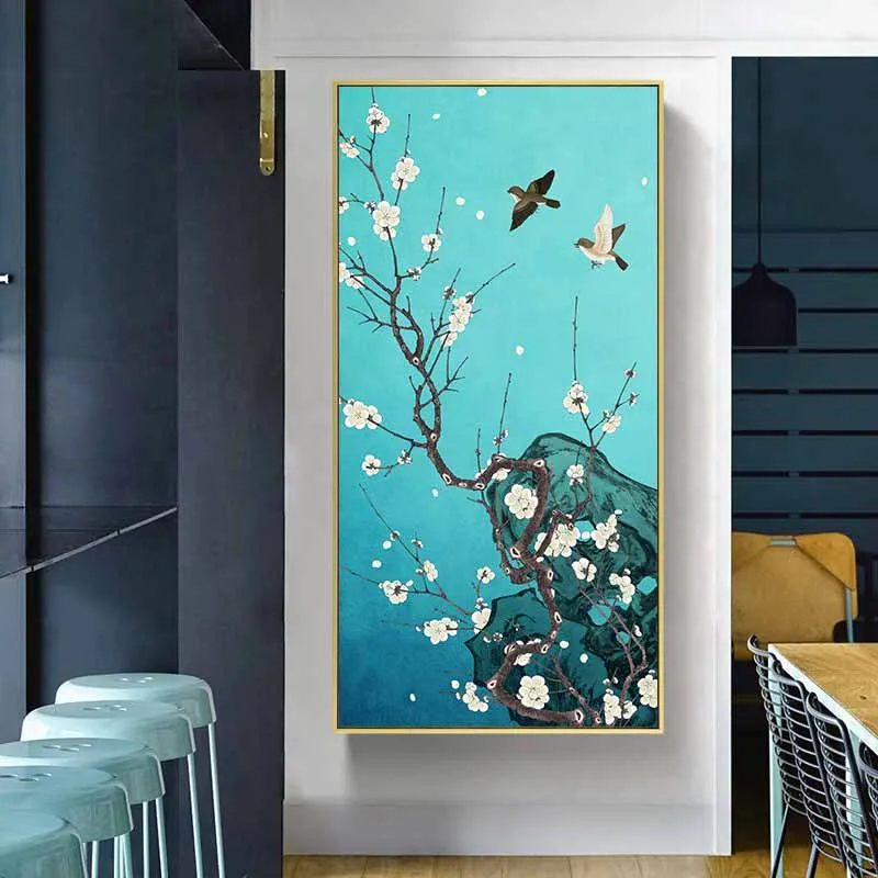 Tranh đôi chim và cây hoa anh đào