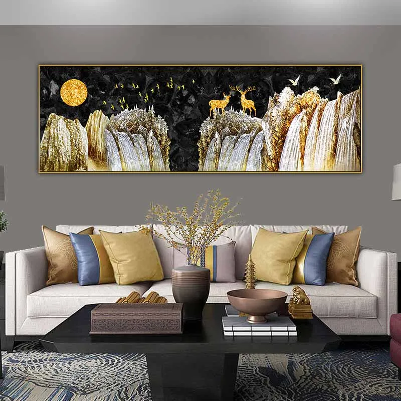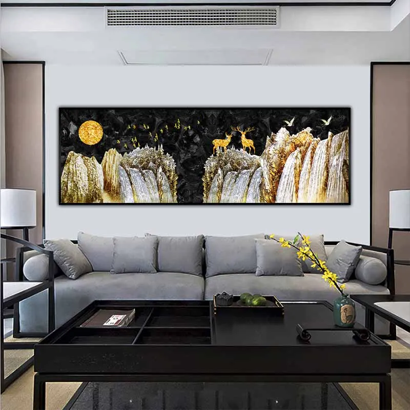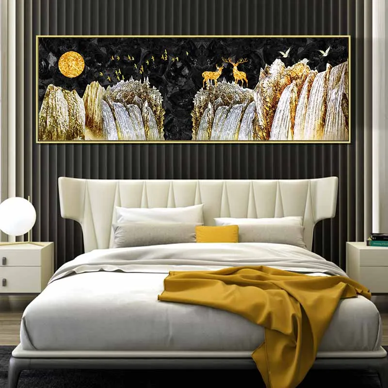 Tranh đôi hươu nai vàng đứng trên ngọn núi trừu tượng
