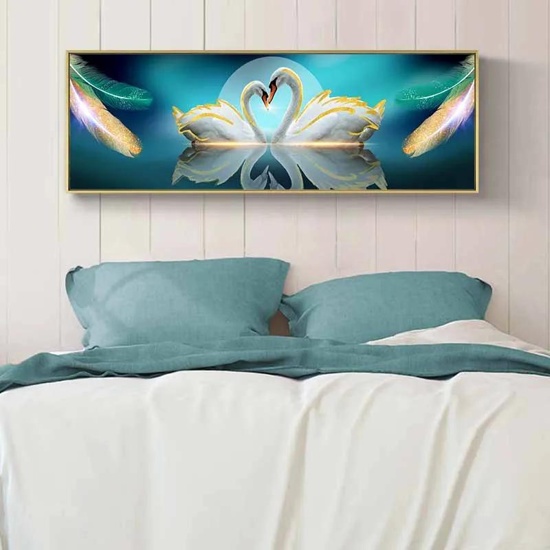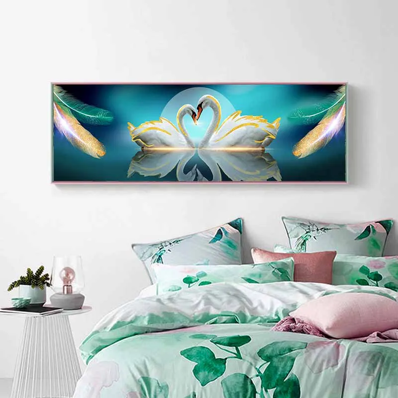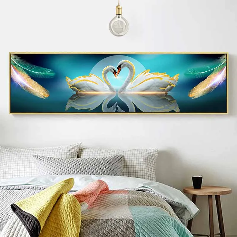 Tranh đôi thiên nga và những chiếc lông chim