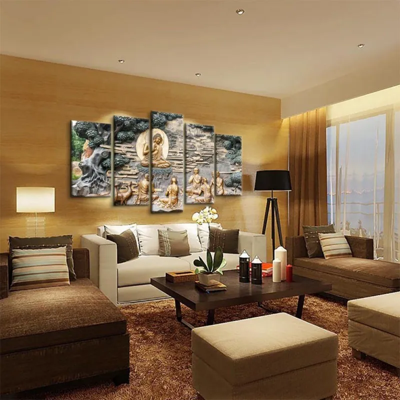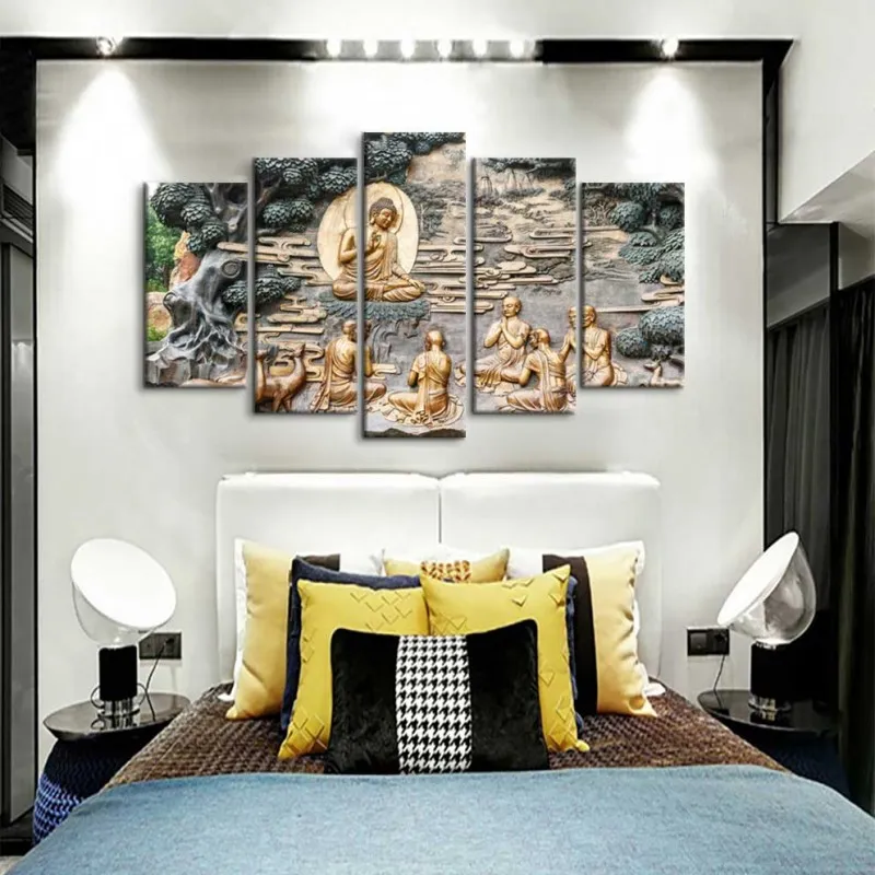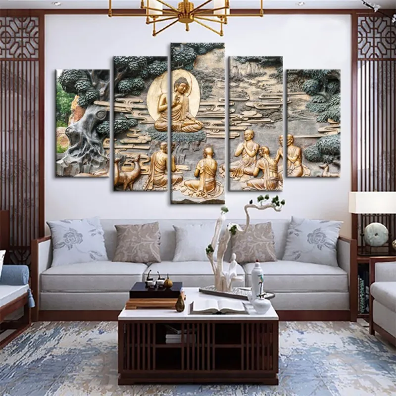 Tranh in canvas Đức Phật đang ngồi dưới gốc cây bồ đề thuyết pháp cho các môn đồ.