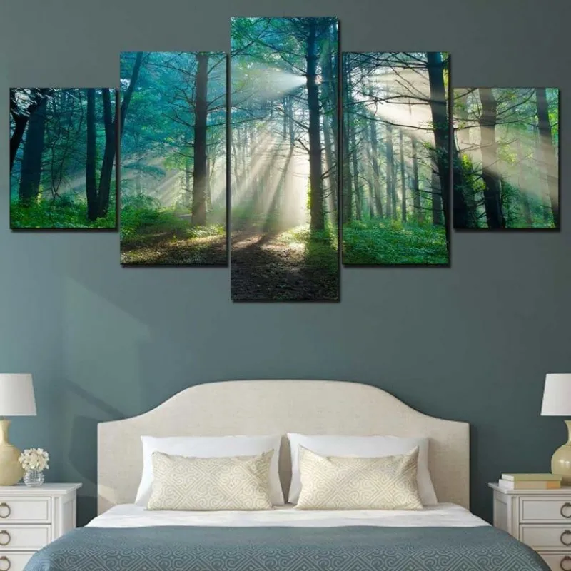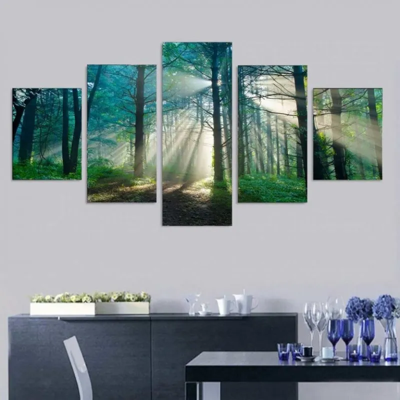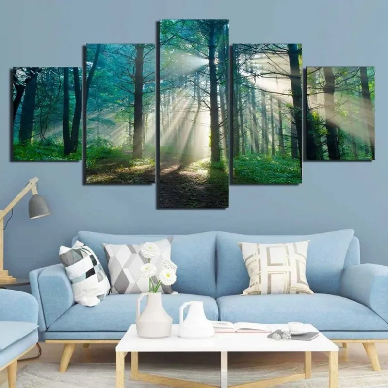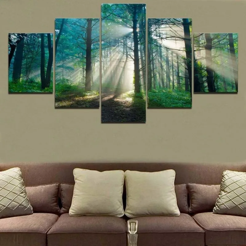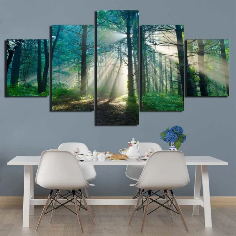 Tranh canvas phong cảnh ánh nắng mặt trời xuyên qua một khu rừng sương mù vào mùa hè.