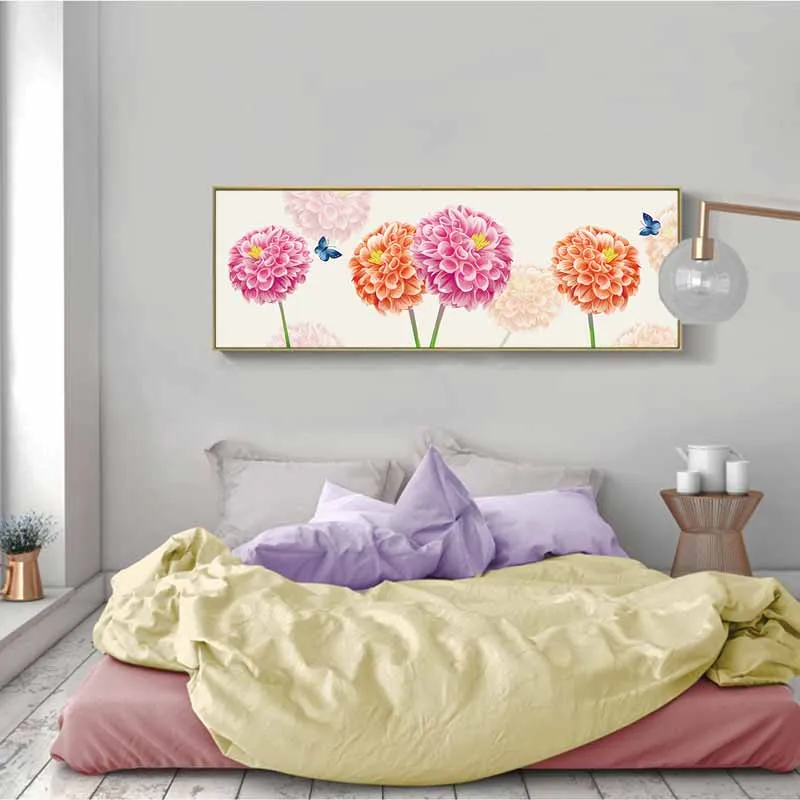 Tranh in canvas hoa Cẩm Tú Cầu và bướm, màu sắc nhẹ nhàng nhưng không kém phần sinh động, thích hợp treo ở phòng khách, phòng làm việc, phòng ngủ, bàn học, bàn làm việc…