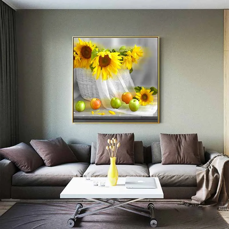 Tranh hoa hướng dương và những quả táo