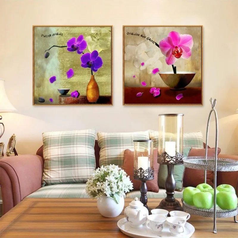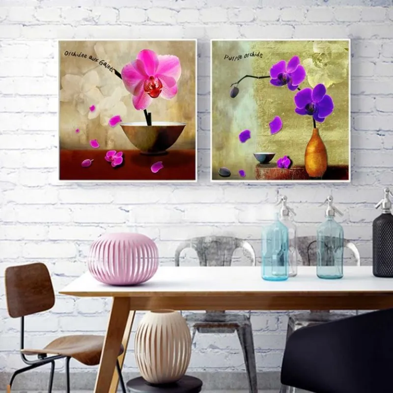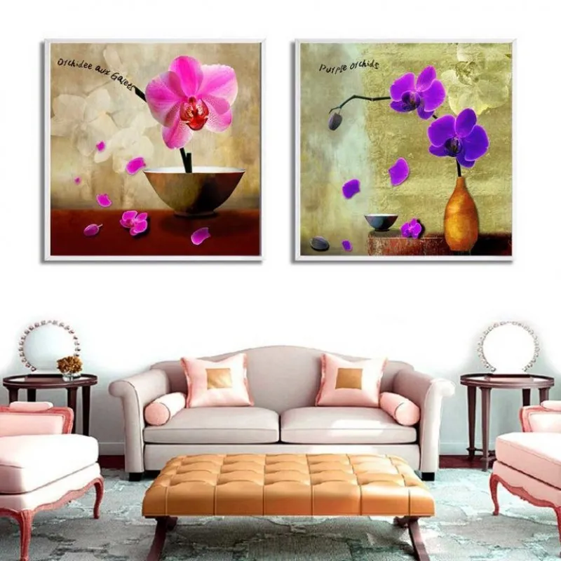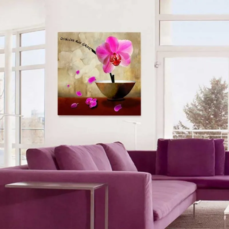 Trang in canvas hoa Lan Hồ Điệp, kết hợp chữ, Orchidee aux galets, purple orchids.