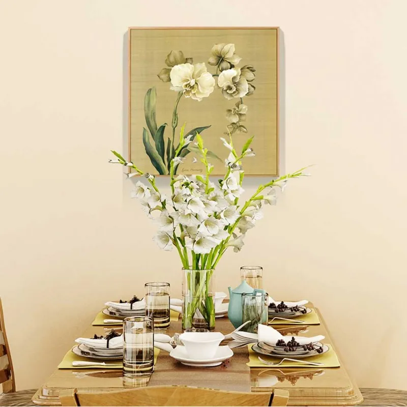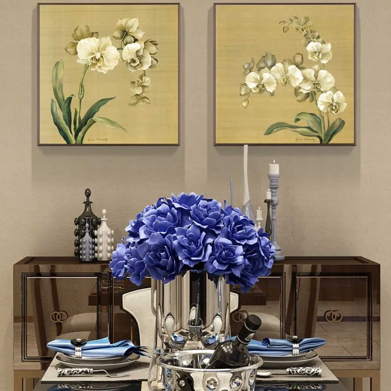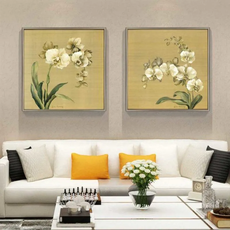 Mẫu tranh hoa lan Hồ Điệp được in ra từ thể loại tranh màu nước, tác giả sử dụng màu trầm tối và khá chi tiết. Tranh lan được gọi là Hồ Điệp nghĩa là bươm bướm vì cánh hoa tương tự như cánh bướm, Hồ Điệp được ví như đôi uyên ương luôn quấn quýt bên nhau, điều này có nghĩa là sẽ mang lại sự êm ấm và hạnh phúc cho gia chủ.
