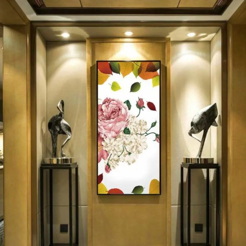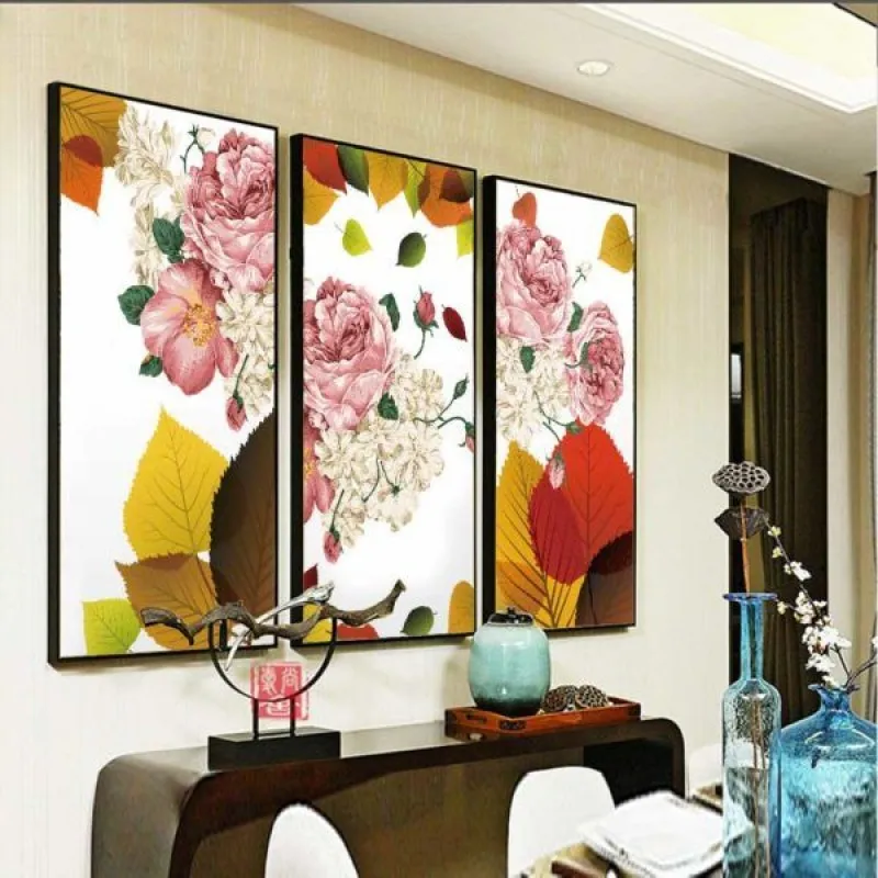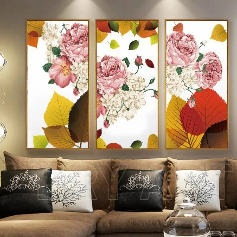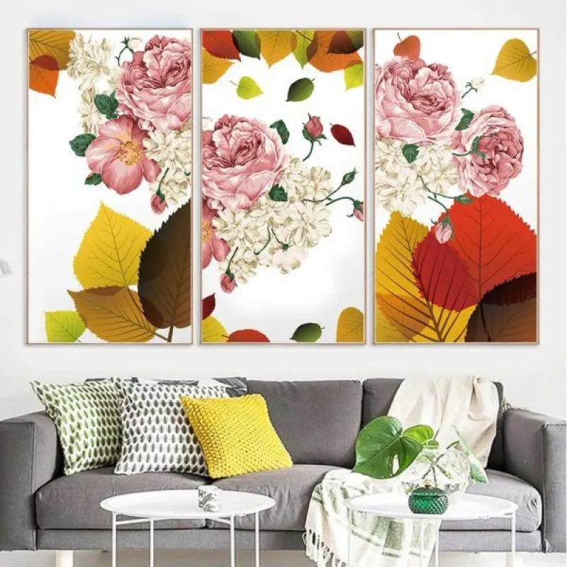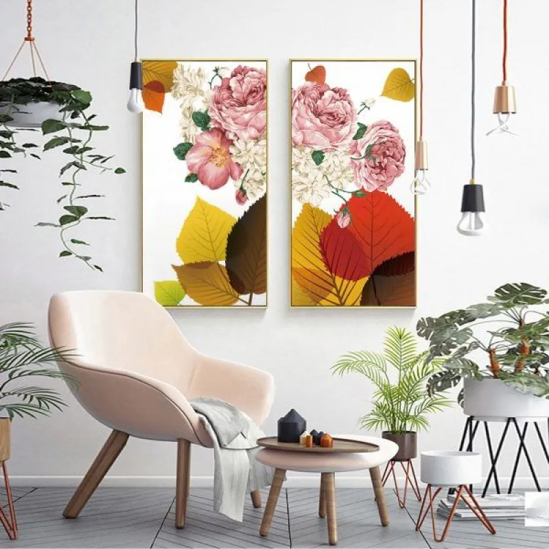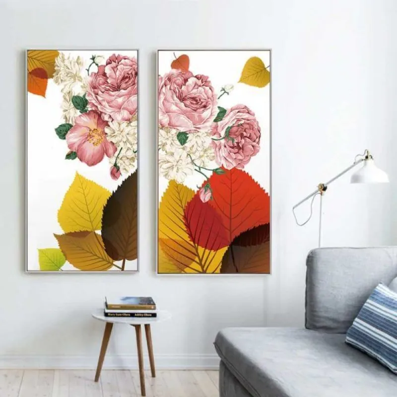 Tranh canvas những bông hoa Mẫu Đơn với những chiếc lá mang đầy sắc Thu, thiết kế màu sắc sống động, thích hợp treo ở phòng khách…