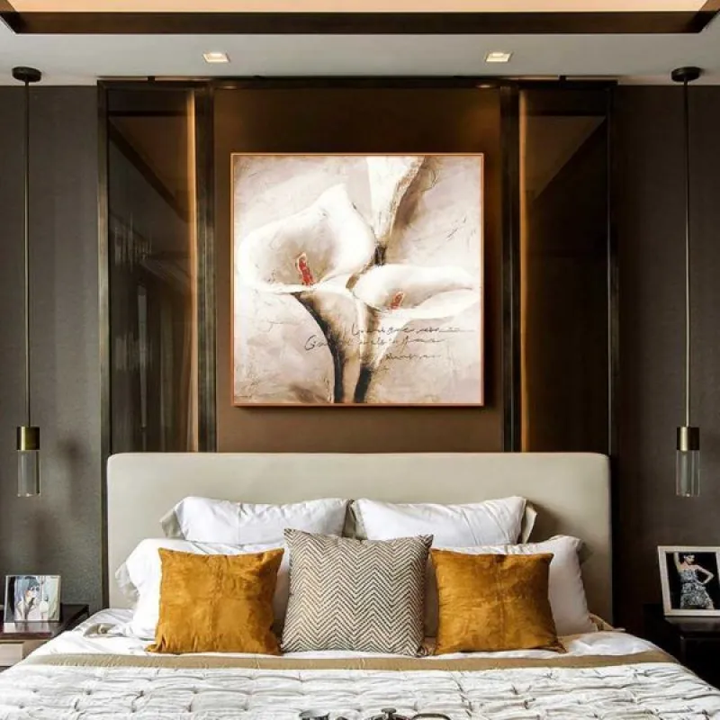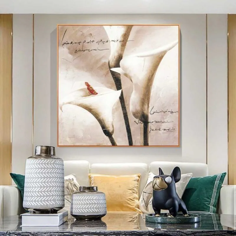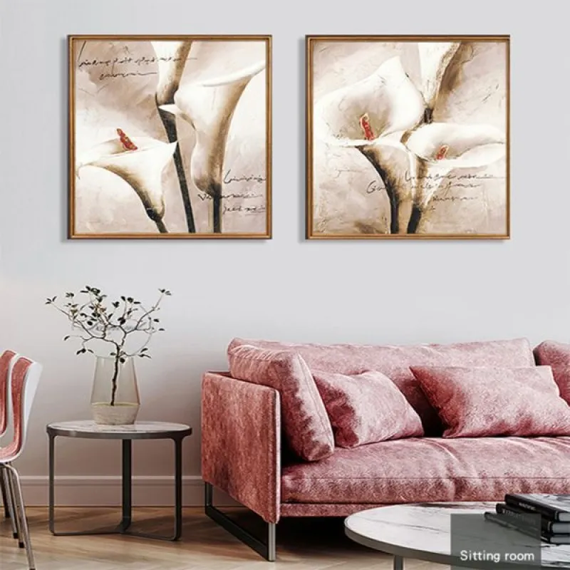 Tranh in canvas hoa Rum, tên gọi khác: Hoa Ly, Arum Lily, Calla Lily, White Arum và Lily của sông Nile. Hoa Ly nói chung thể hiện sự cảm nhận sâu sắc về tình yêu đôi lứa, sự cung kính tôn nghiêm. Tranh mang sắc nâu, màu sắc đơn giản nhưng vẫn làm nổi bật lên hình ảnh của những bông hoa. Thích hợp treo ở phòng khách, phòng làm việc, phòng ngủ, quán cà phê, chân cầu thang, bàn học, bàn làm việc…