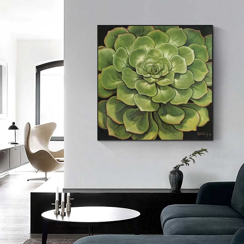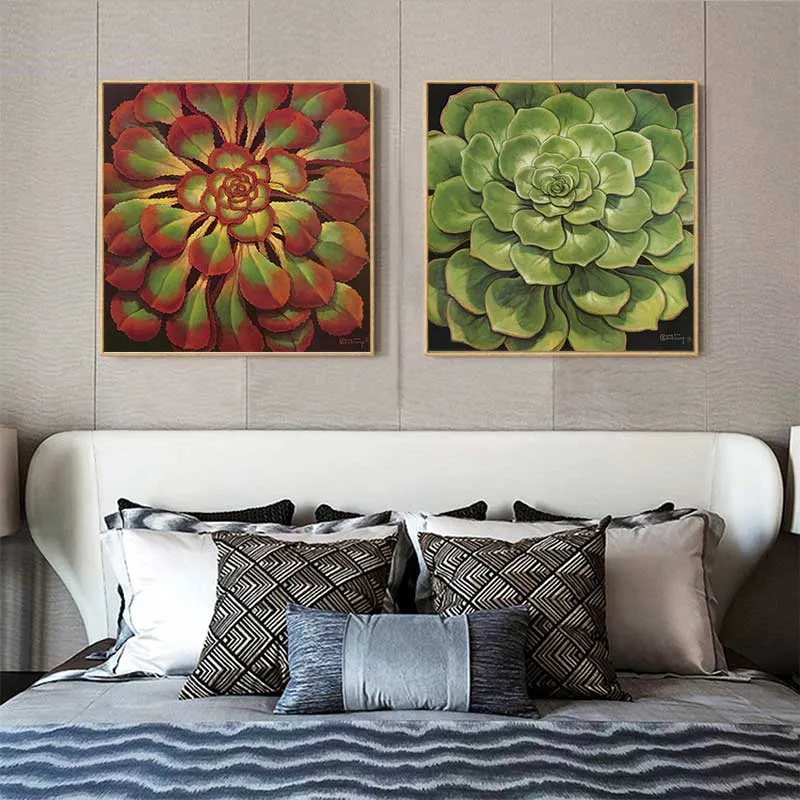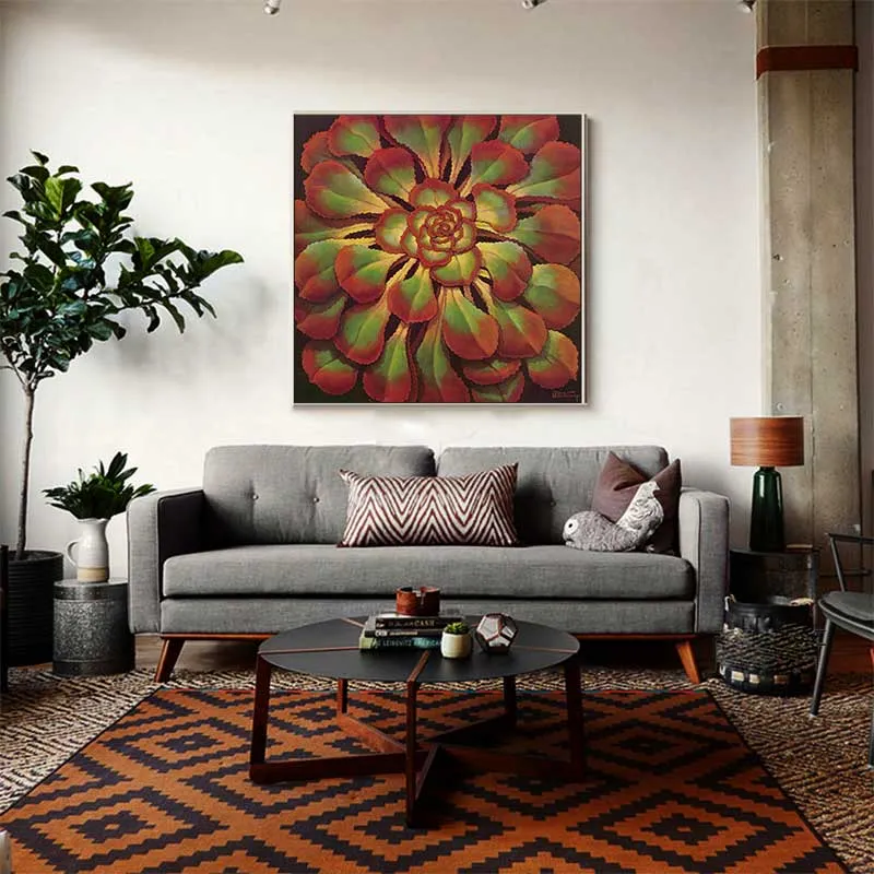 Tranh hoa sen đá xanh và đỏ của họa sĩ Janet Kruskamp