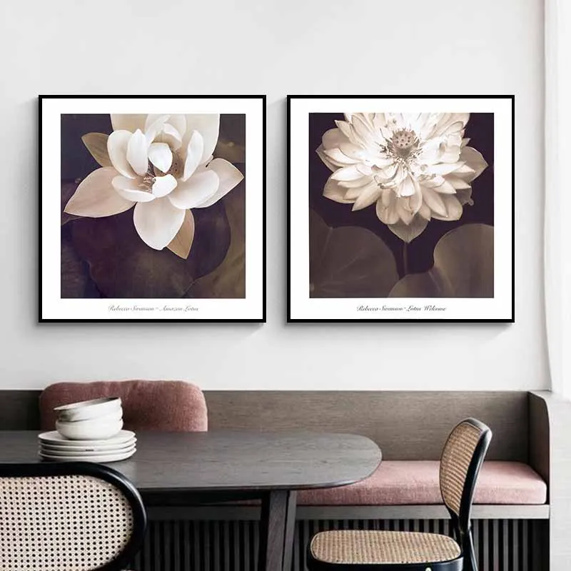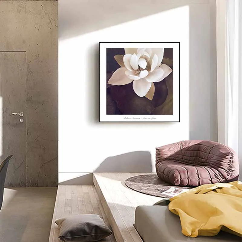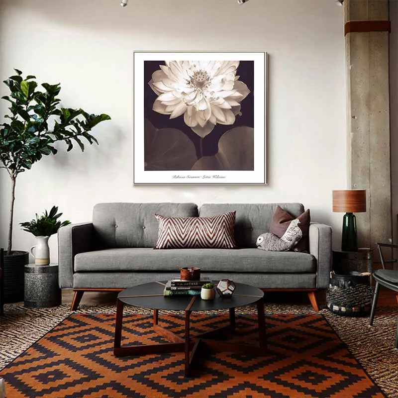 Tranh hoa sen trắng khổ vuông theo phong cách cổ điển