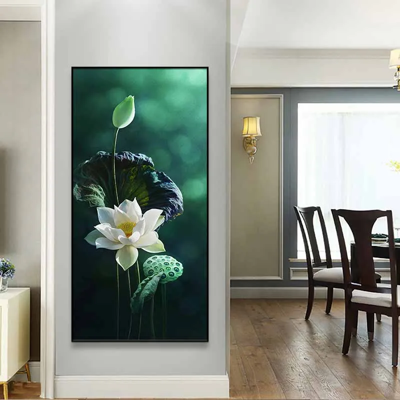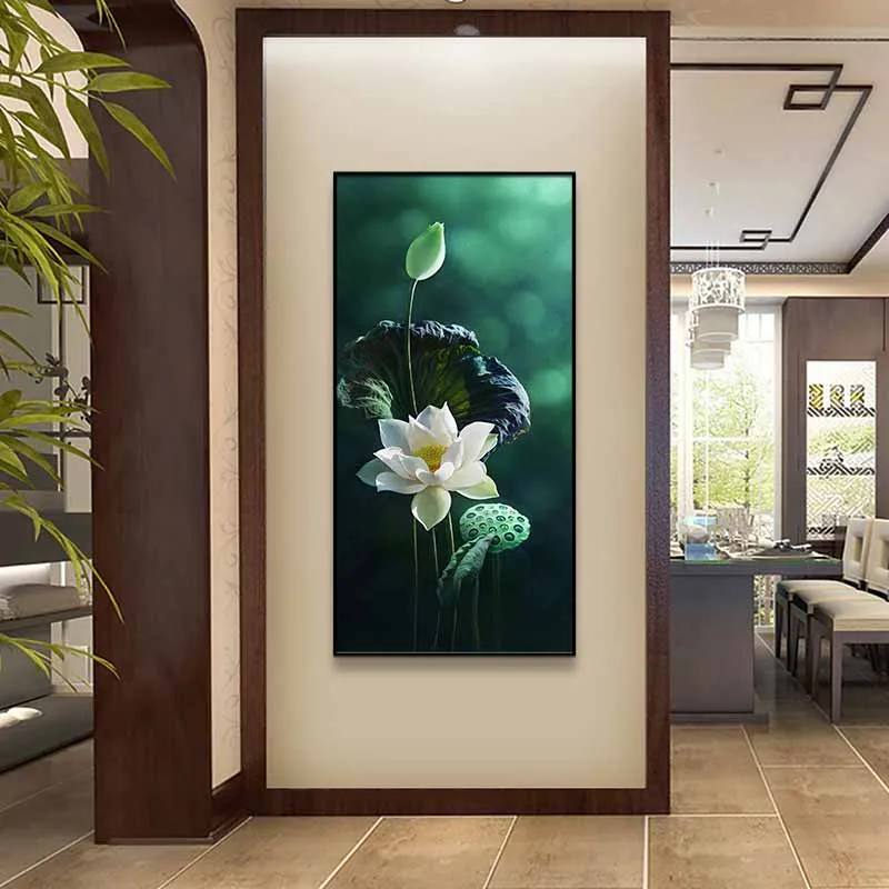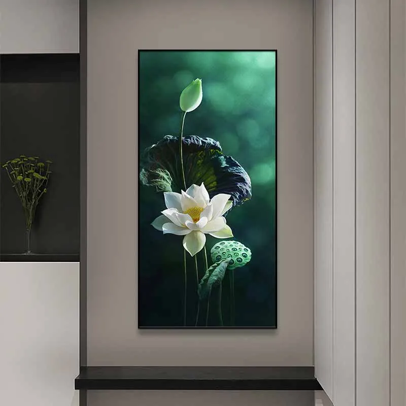Tranh hoa sen trắng treo lối đi