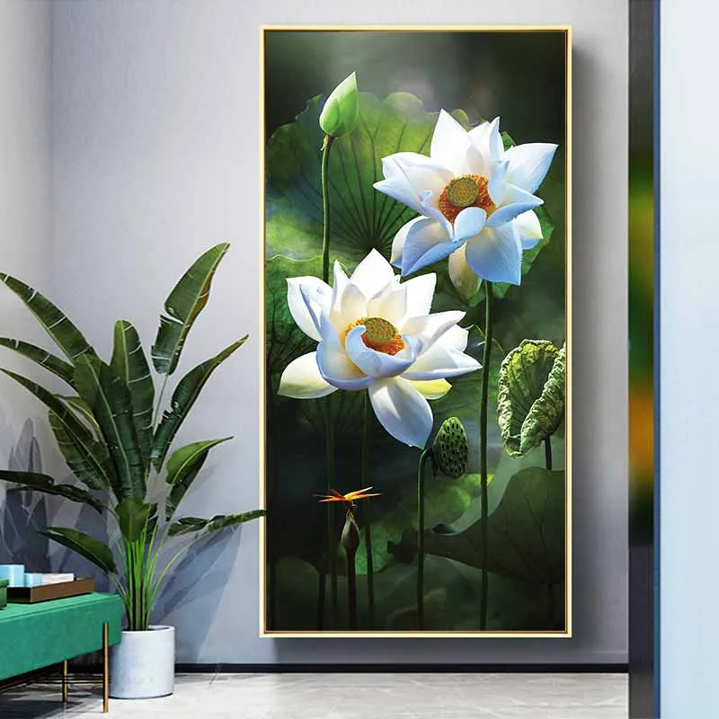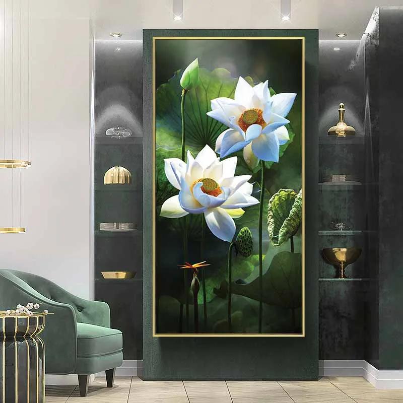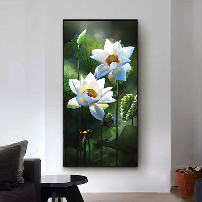 Tranh hoa sen trắng và con chuồn chuồn ớt