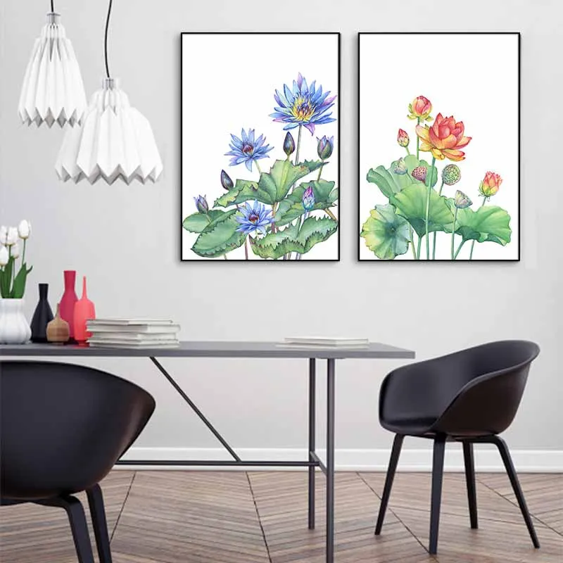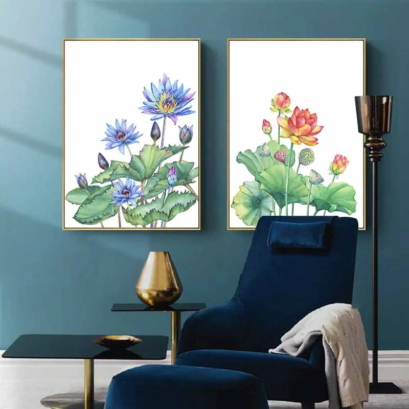 Tranh in canvas hoa sen và hoa súng.