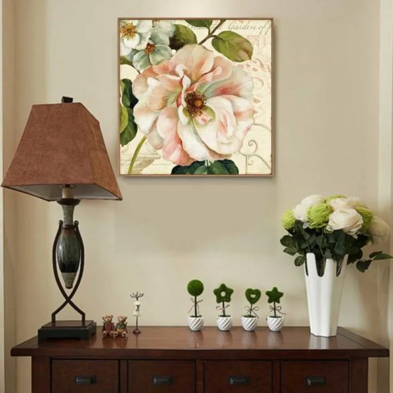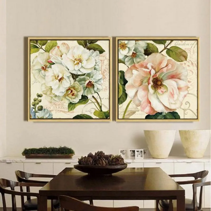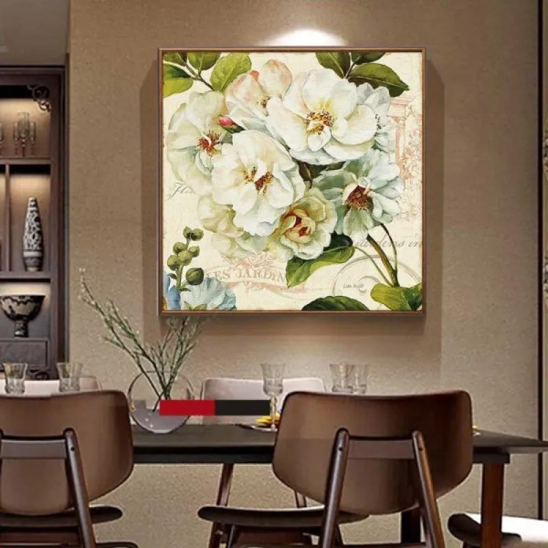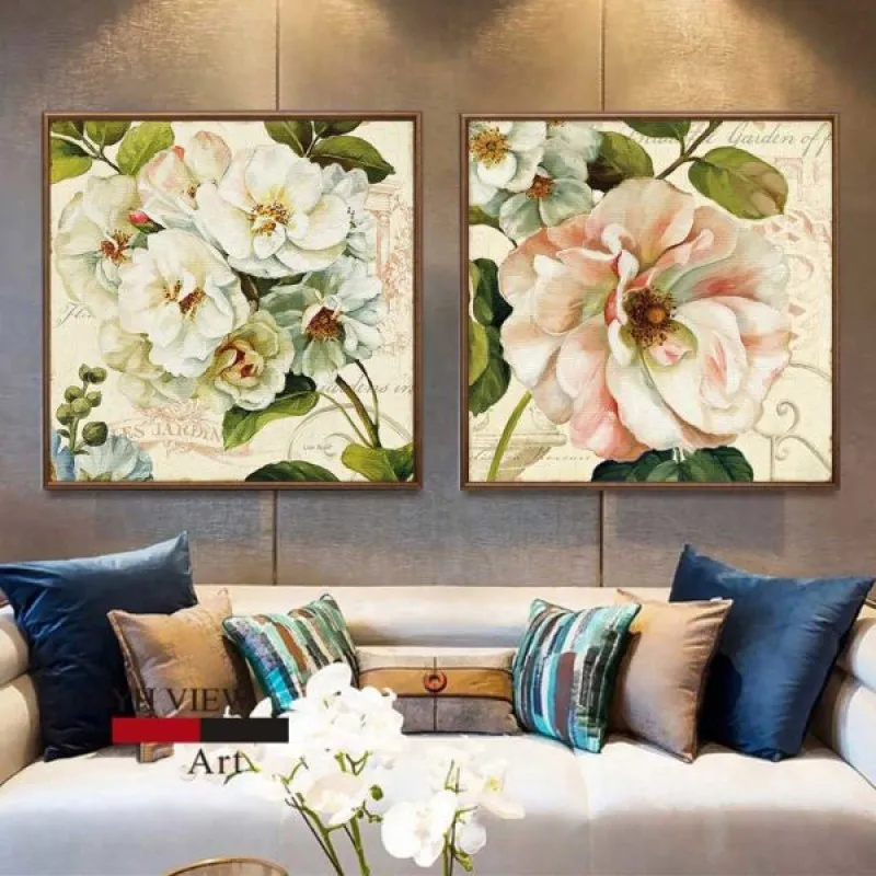 Tranh canvas hoa trà màu trắng phớt hồng… màu sắc mang phong cách Vintage cổ điển thu hút người xem, thích hợp treo ở phòng khách, phòng làm việc, phòng ngủ, nhà hàng, khách sạn, chân cầu thang, bàn học, bàn làm việc…
