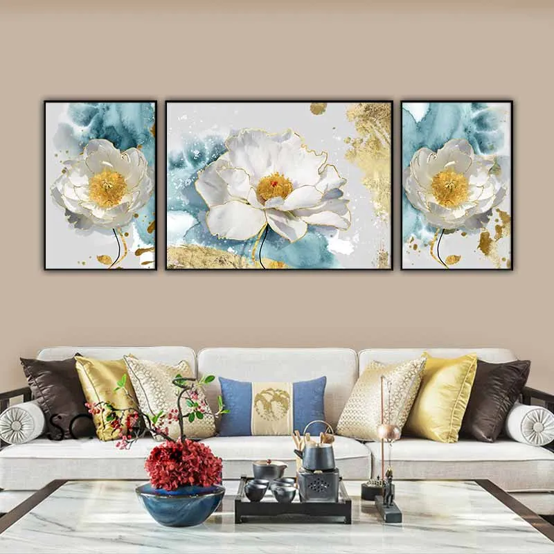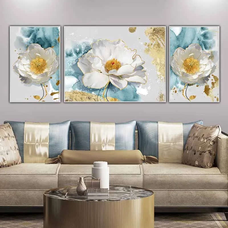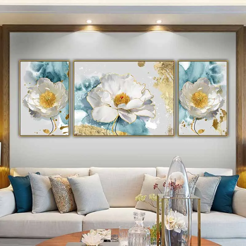 Tranh hoa trừu tượng trên nền xanh dương