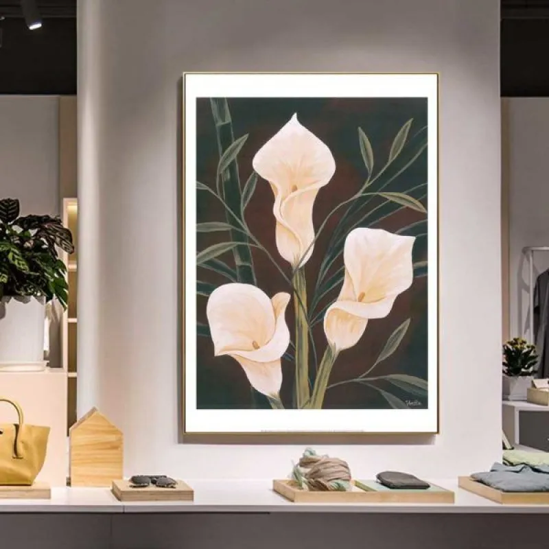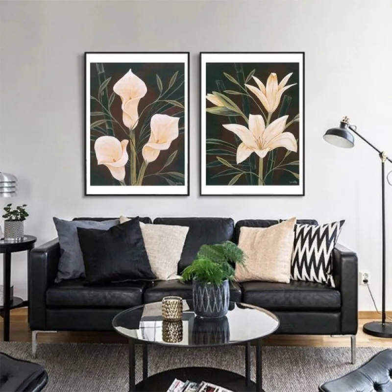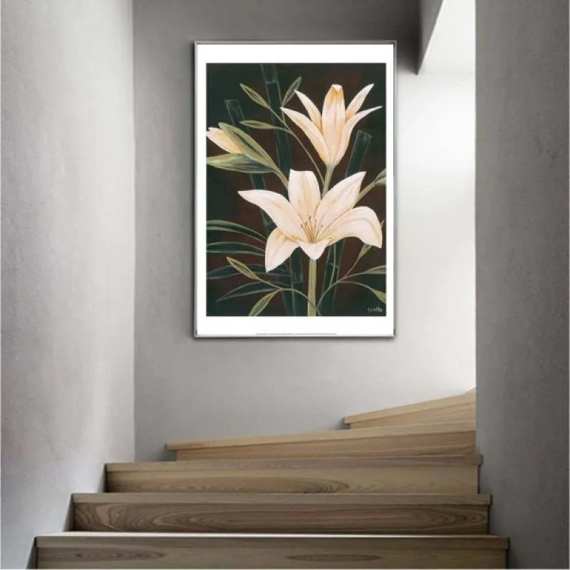 Tranh in canvas hoa ly, hoa tulip, hoa Huệ là loài hoa quý phái, tượng trưng cho sắc đẹp và tình yêu cao thượng, chung thủy. Màu nền trầm tối làm nổi bật những bông hoa, thích hợp treo ở phòng khách, phòng làm việc, phòng ngủ, nhà hàng, quán ăn, chân cầu thang, bàn học, bàn làm việc…