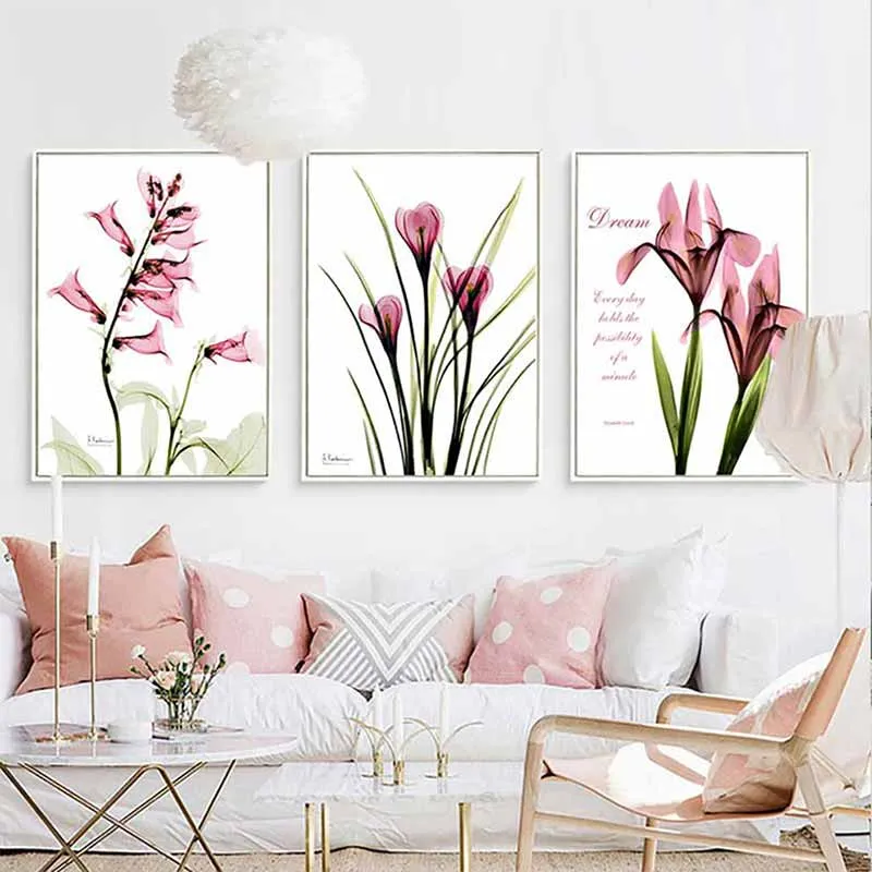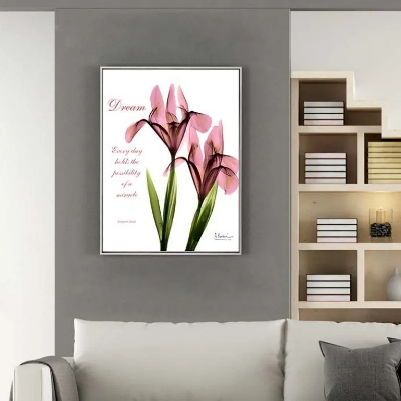 Tranh in canvas các loài hoa xinh đẹp nổi tiếng hoa tulip, hoa loa kèn, tranh được kết hợp với chữ Dream, Every day holds the possibility of a miracle