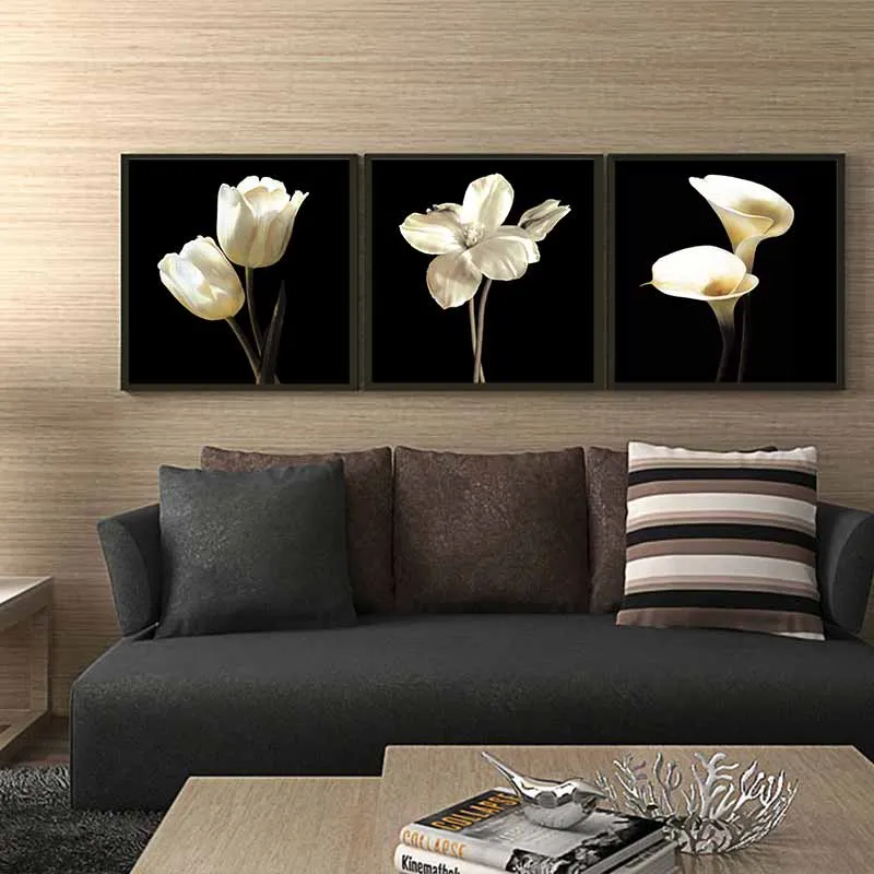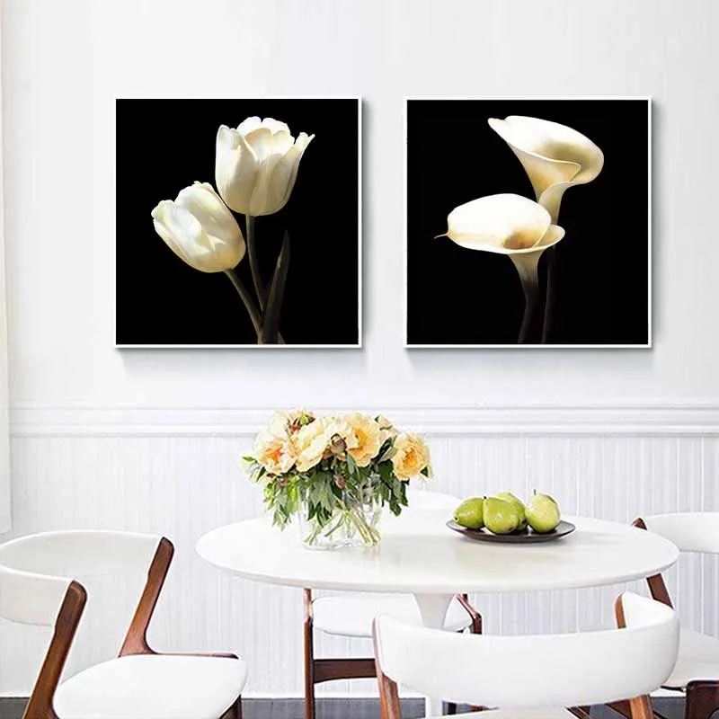 Tranh hoa Tulip và hoa Rum (Calla Lyli) trên nền đen