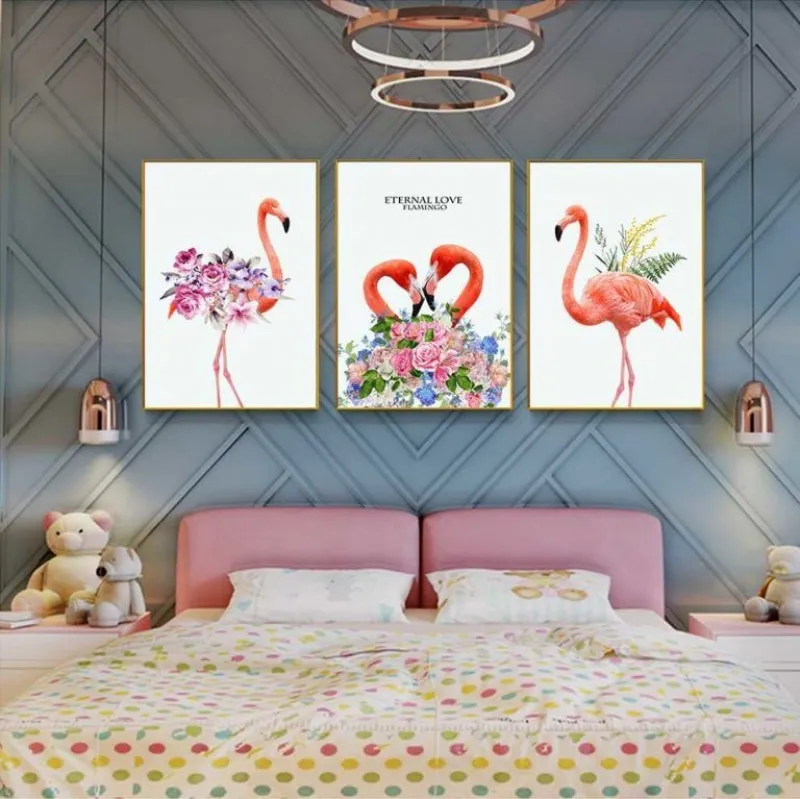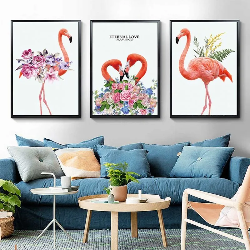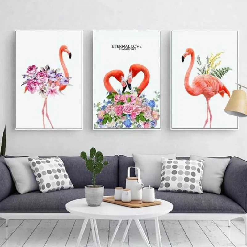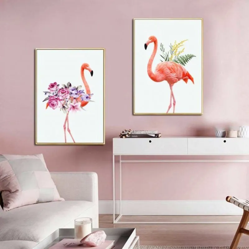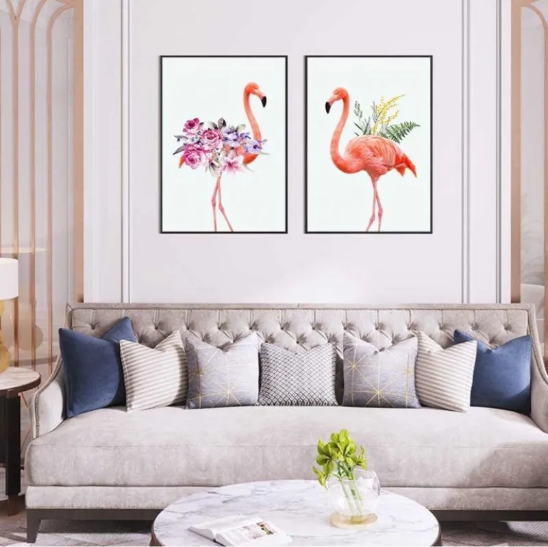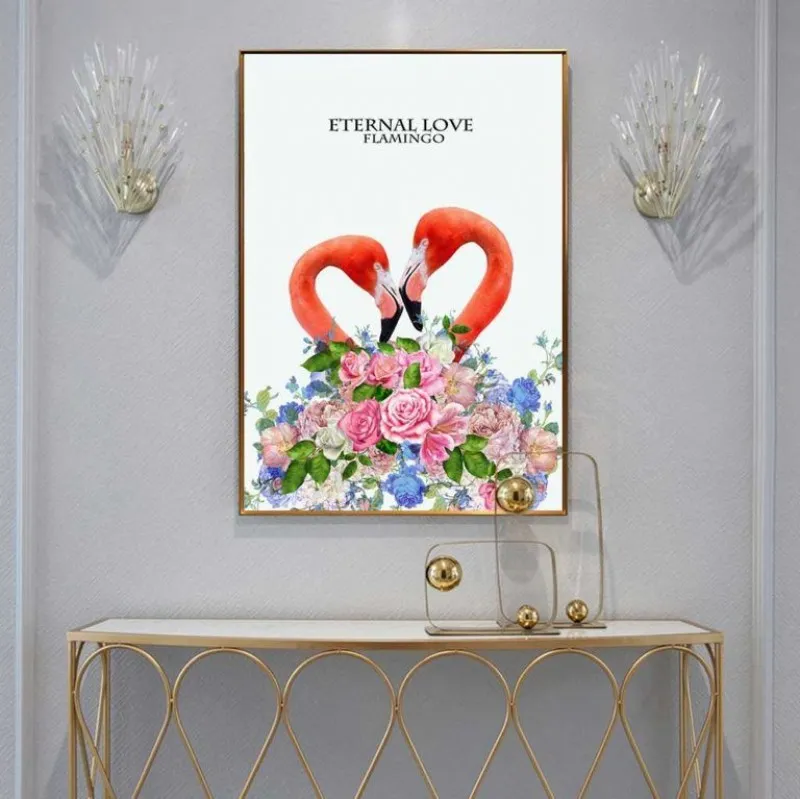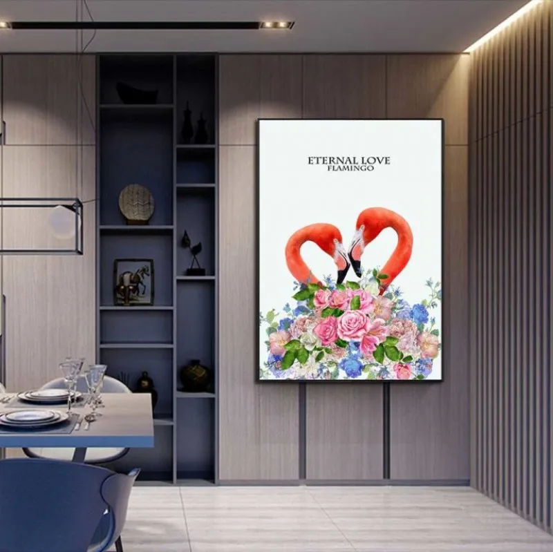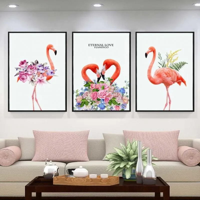 Tranh hồng hạc. hoa hồng và lá dương xỉ