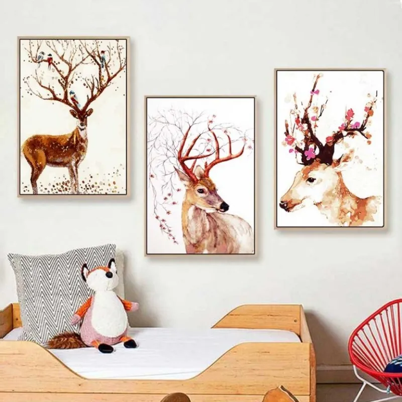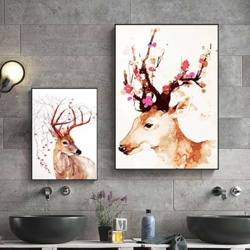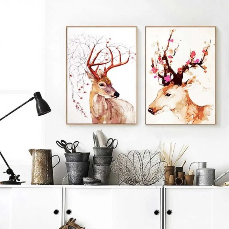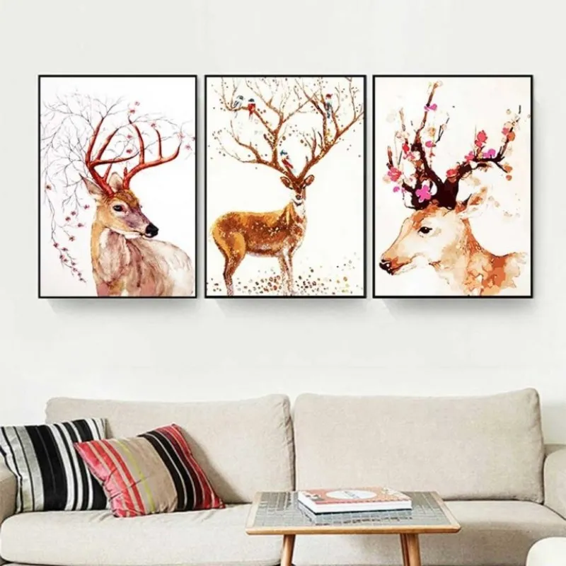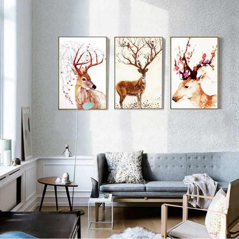 Tranh in canvas những chú nai và hươu sừng điểm đặc biệt là đầy hoa nở ở trên sừng với màu sắc cực kì bắt, Trong âm hán nai là lộc, đồng thời trên sừng nai đầy lá non và hoa cũng là lộc (đi hái lộc), đây là bộ tranh theo quan niệm phong thủy là sẽ mang lại tài lộc cho gia chủ.