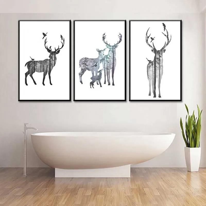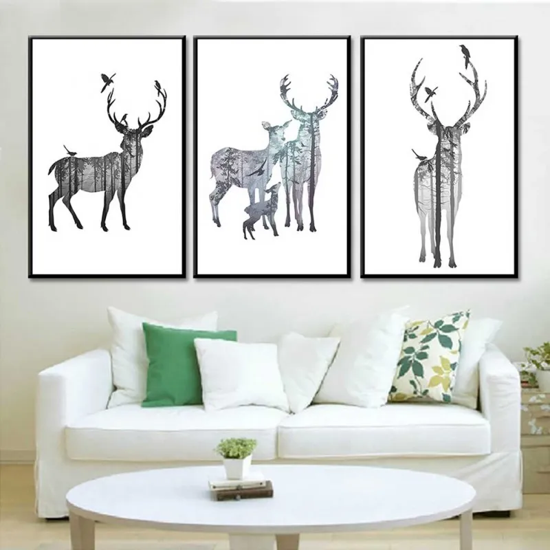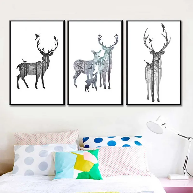 Tranh bộ chú hươu, đôi nai, với màu sắc sinh động, kiểu cách sáng tạo, nhiều cây cối lồng vào bên trong thân nai thích hợp treo ở phòng khách, phòng ngủ, thư viện, quán cà phê, chân cầu thang, phòng làm việc, tranh lẻ để ở bàn làm việc, bàn học,…
