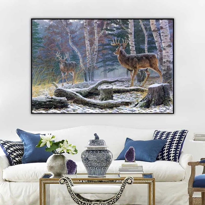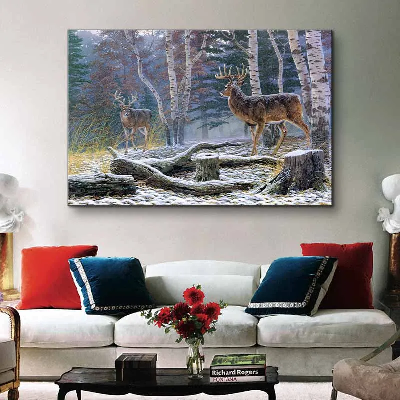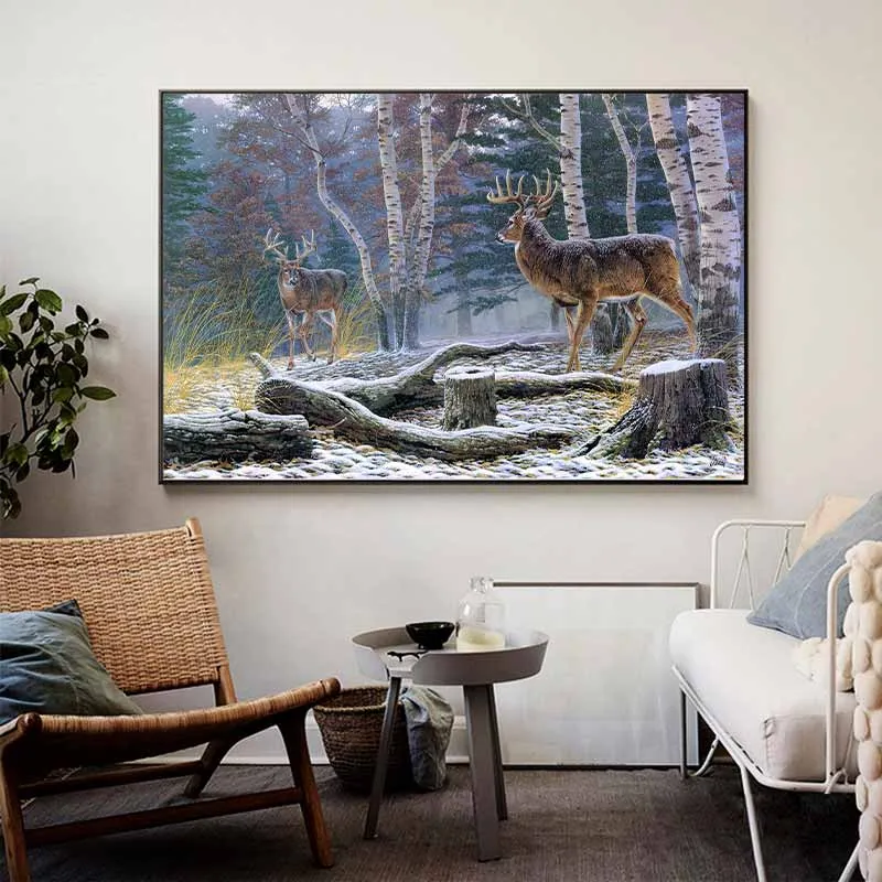 Tranh hươu nai trong rừng vào mùa đông