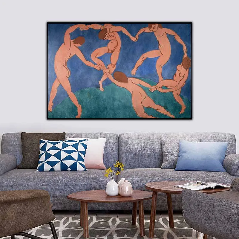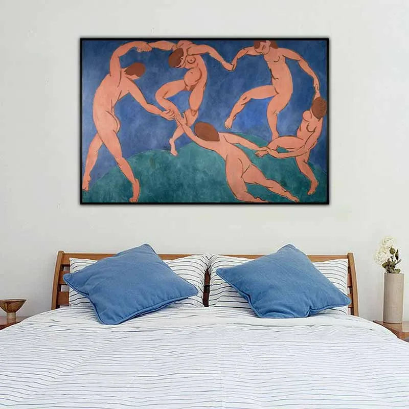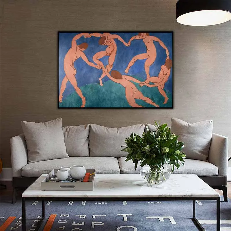 Bức tranh “The Dance” được Henri Matisse thực hiện vào năm 1910 cho Sergei Shchukin, một doanh nhân người Nga. Bức tranh này có một vòng tròn những người nhảy múa và được coi là một điểm nổi bật trong sự nghiệp của họa sĩ trong việc thúc đẩy nghệ thuật đương đại. Các nhân vật được vẽ dưới dạng hình khối đơn giản và dùng màu sắc sáng tạo ra một sức hút mạnh mẽ cho người xem. Đây là một bức tranh tuyệt vời của phong cách nghệ thuật fauvism (trường phái dã thú) - một phong cách nghệ thuật có xu hướng sử dụng màu sắc rực rỡ và tươi sáng để tạo ra cảm giác động lực. Màu xanh dương của bầu trời và màu xanh lá cây của nền đất tạo nên một khung cảnh hài hòa và rực rỡ.