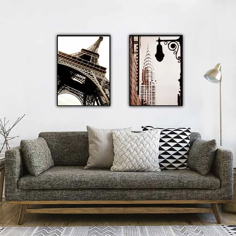 Tranh kiến trúc tòa nhà Chrysler và tháp Eiffel