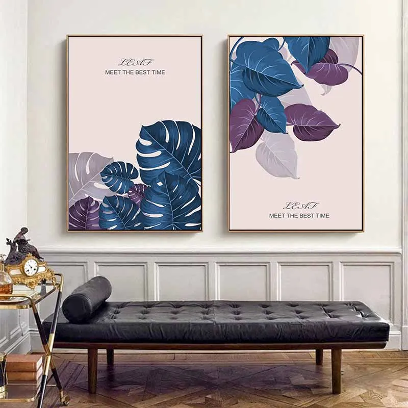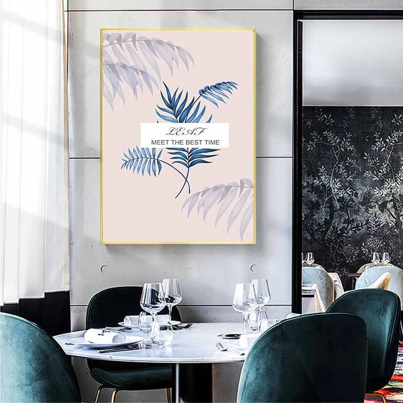 Tranh lá cây môn nước, lá trầu bà nhiệt đới kết hợp chữ Leaf meet the best time