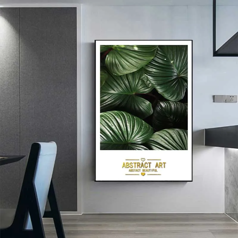 Bức tranh trừu tượng cận cảnh những chiếc lá xanh tươi mát, với các đường gân lá hiện rõ, mang đến cảm giác thư thái và gần gũi với thiên nhiên.