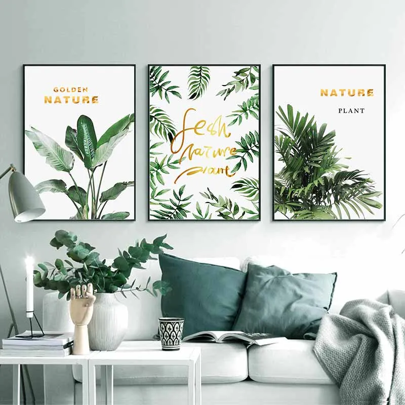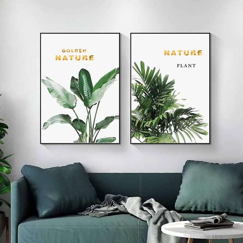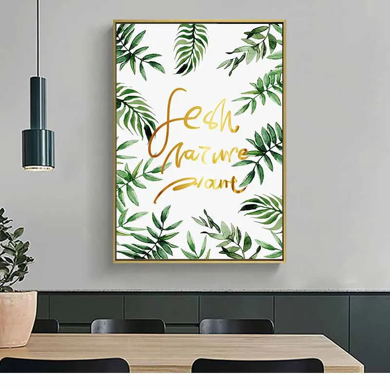 Tranh lá cây nhiệt đới kết hợp chữ Fresh nature plant