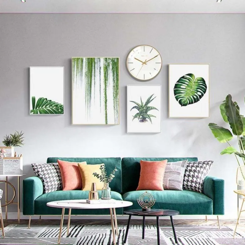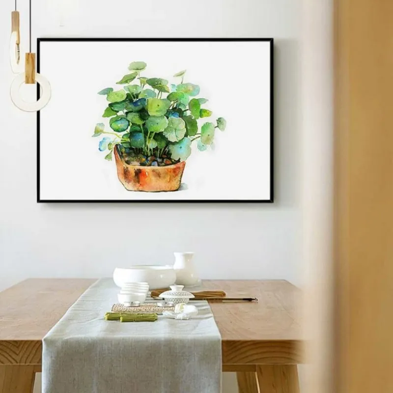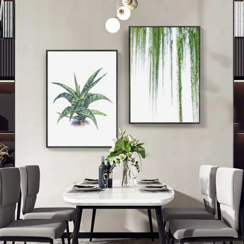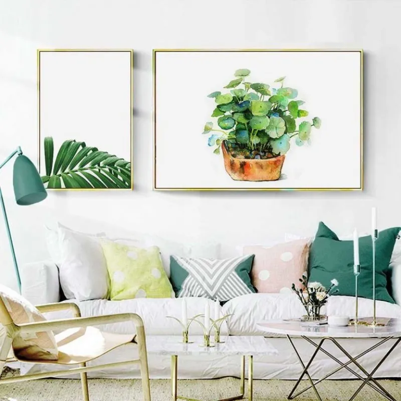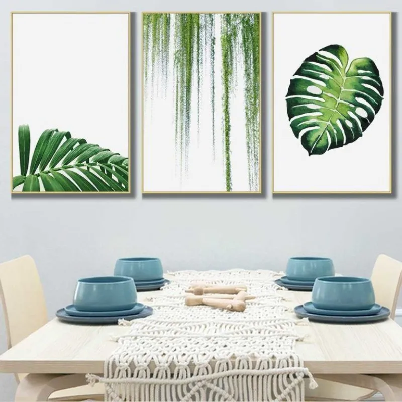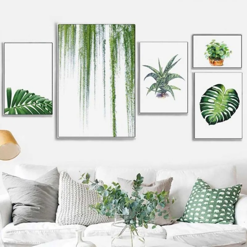 Tranh in canvas các loại lá cây nhiệt đới. Lá trầu bà, cây xương rồng, lá dừa, cây dây leo và chậu cây.