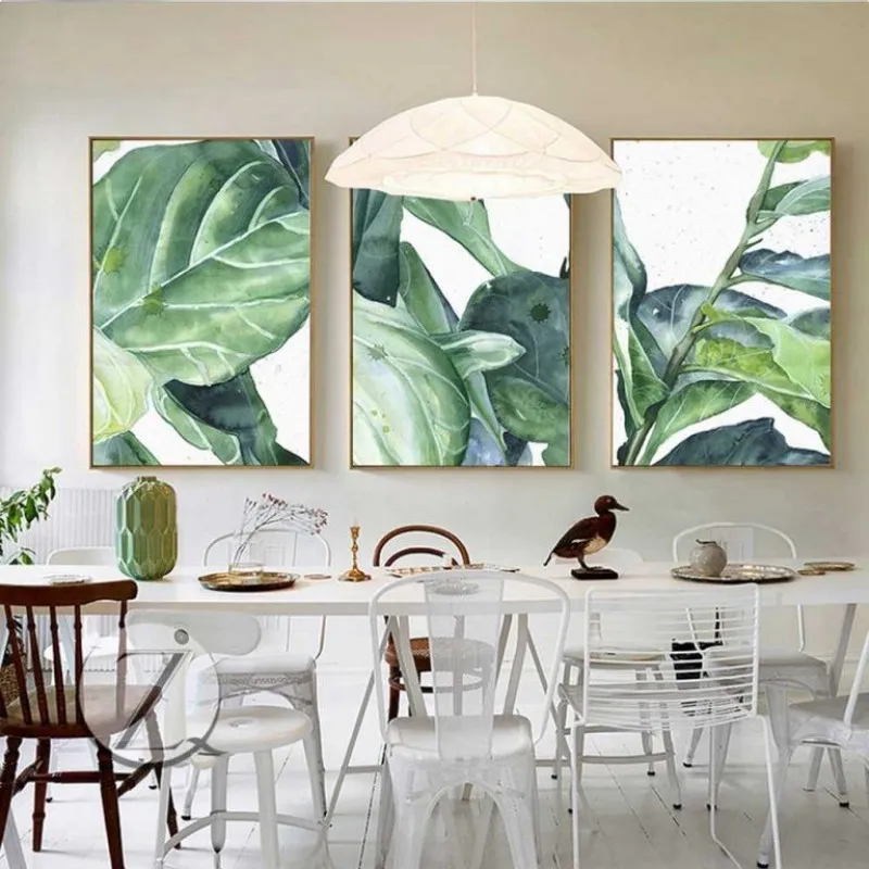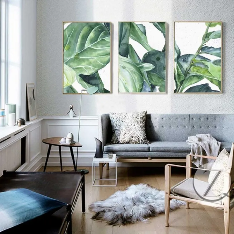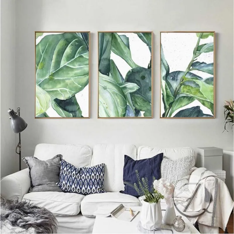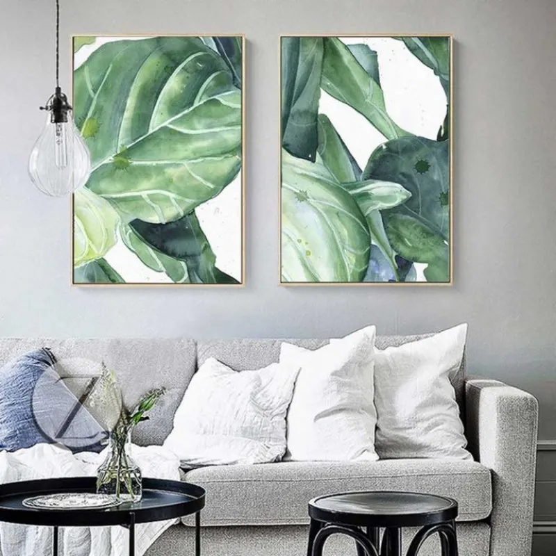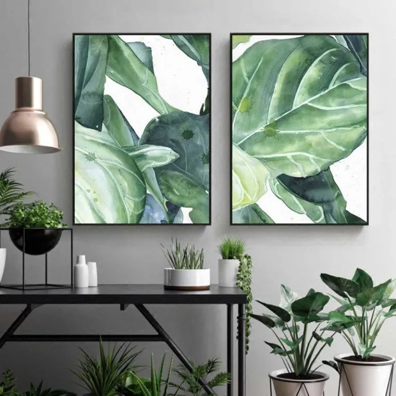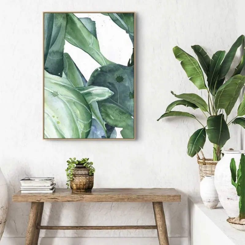 Tranh lá cây nhiệt đới với những giọt nước