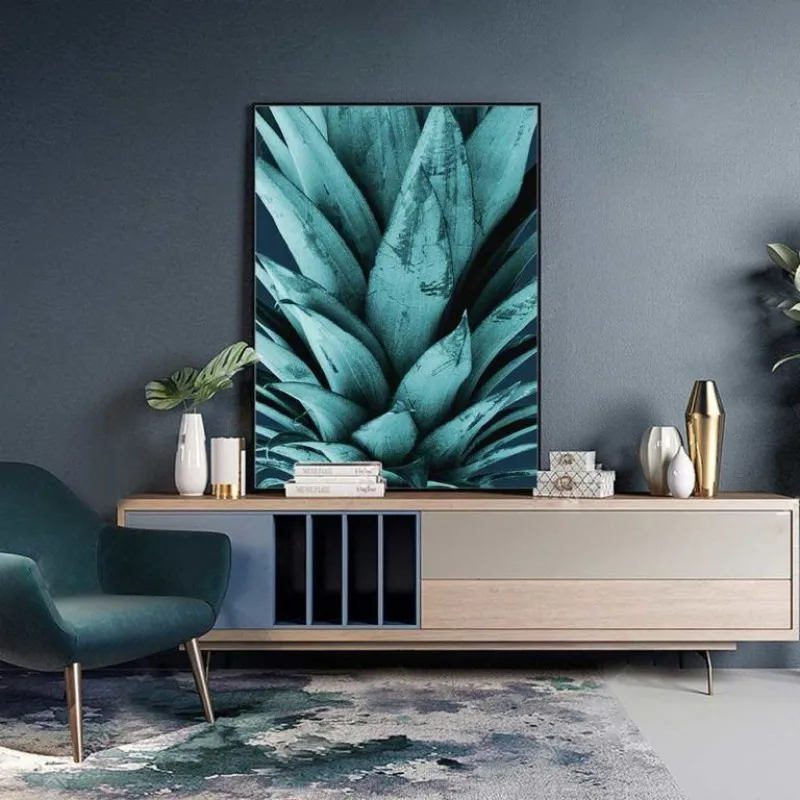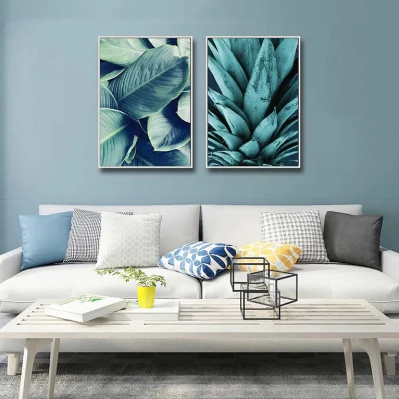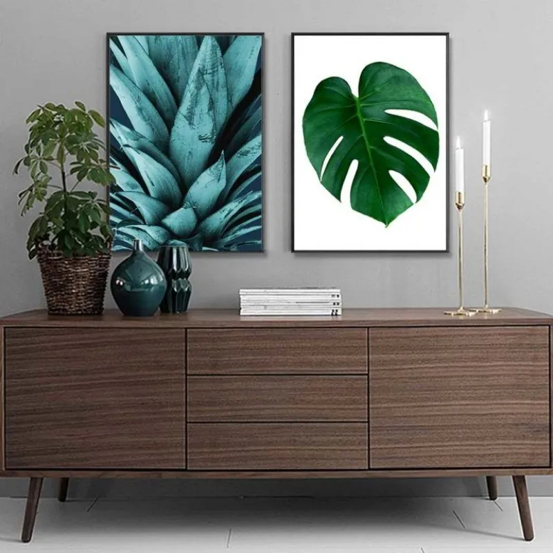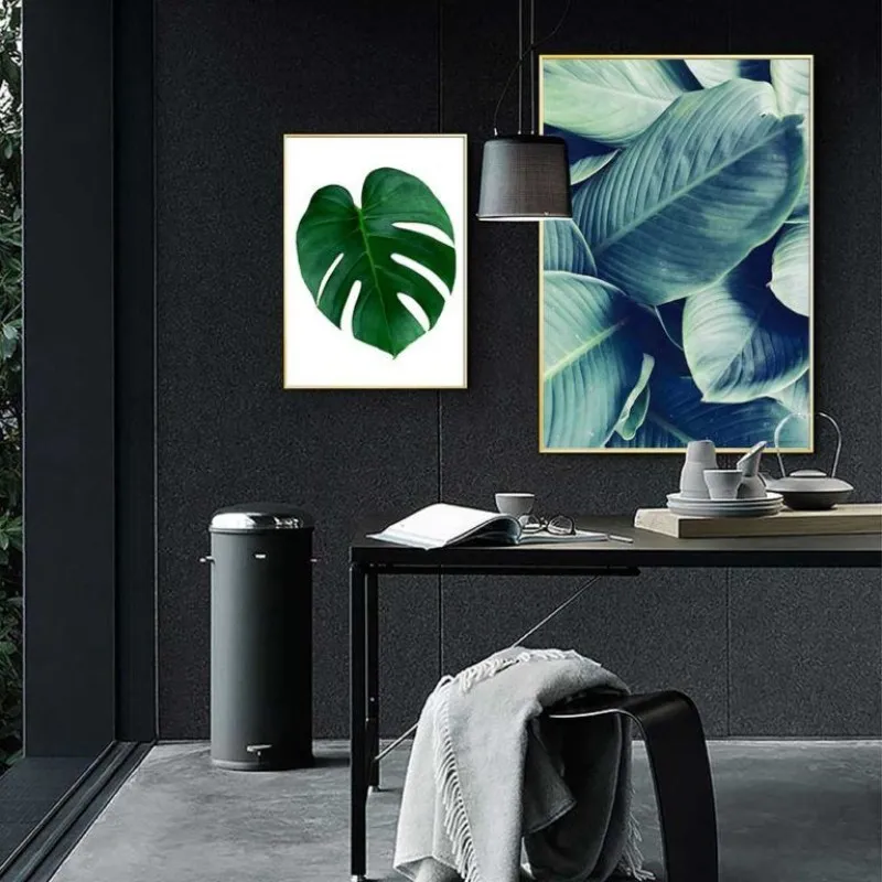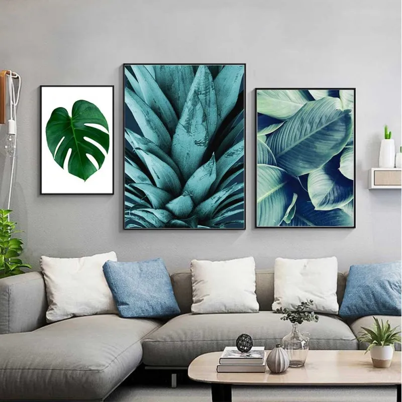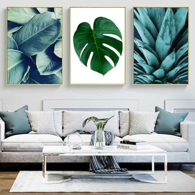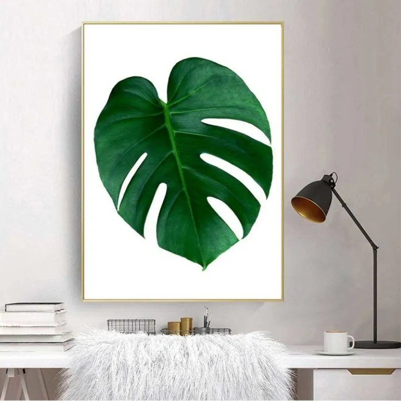 Tranh in canvas lá cây, lá trầu bà, lá cây Phú quý, ngọn của trái thơm.