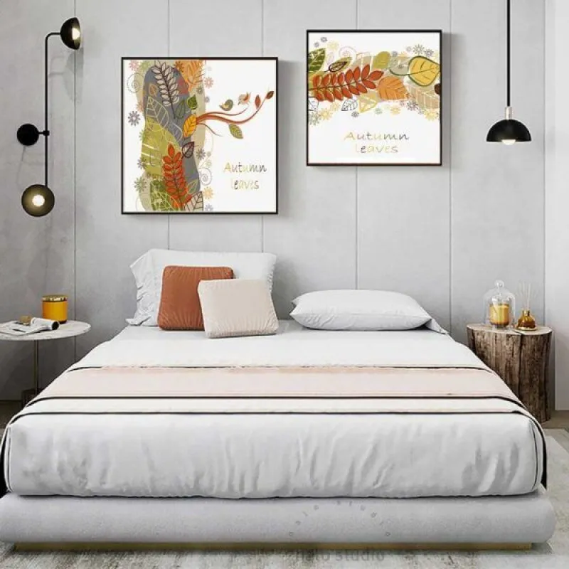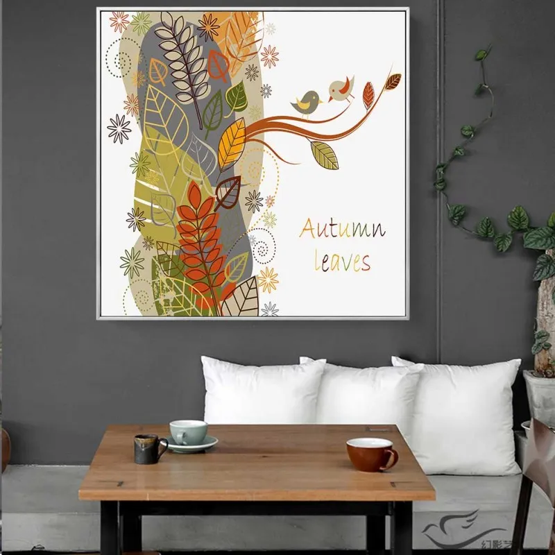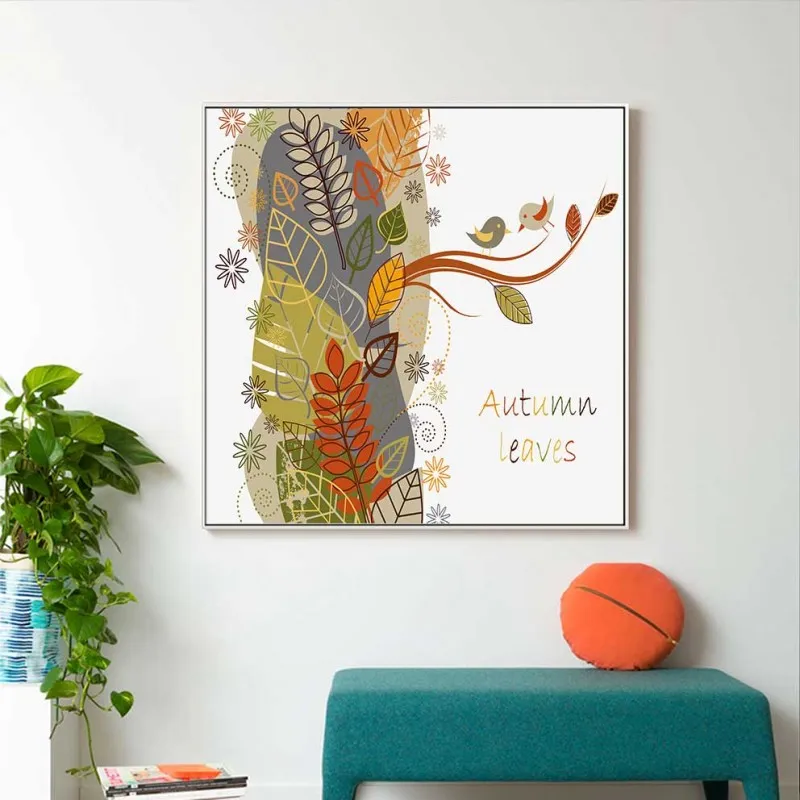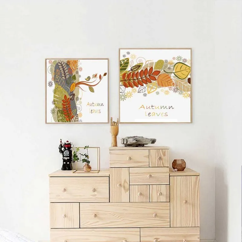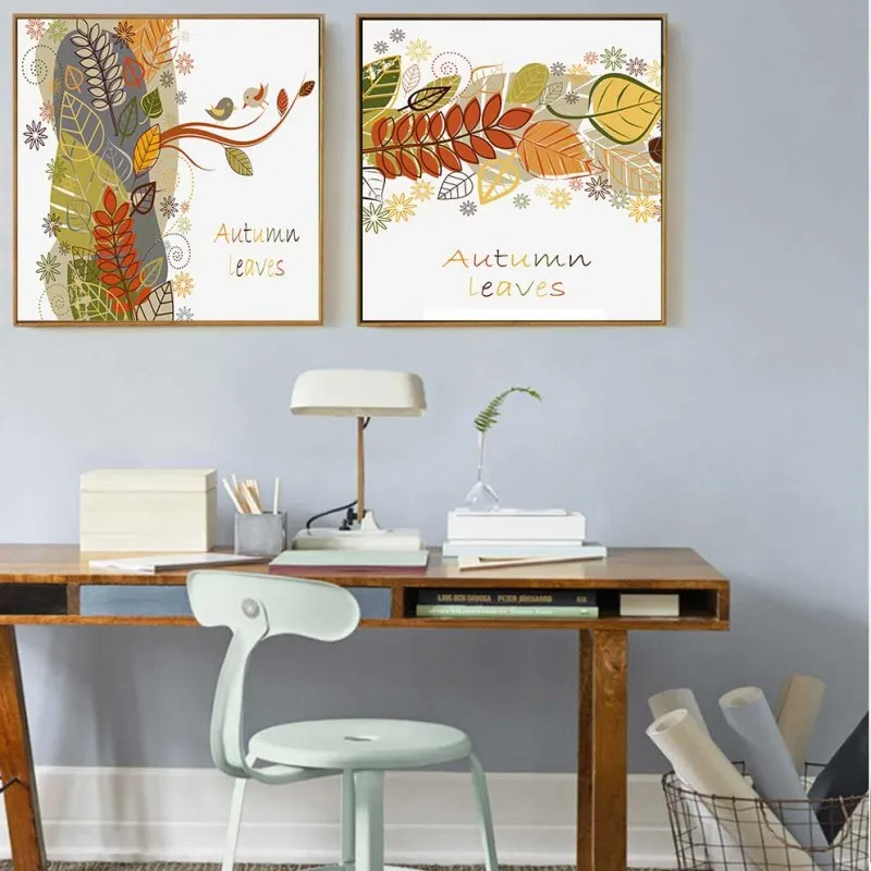 Tranh in canvas chủ đề về mùa thu được kết hợp giữa những chiếc lá vàng và chữ Autumn Leaves.