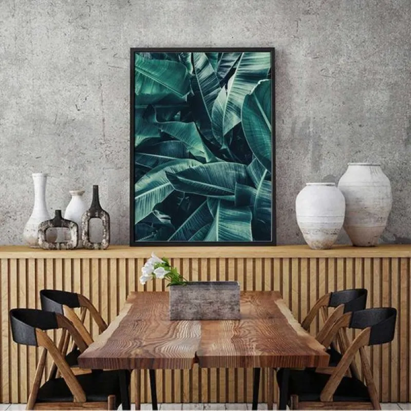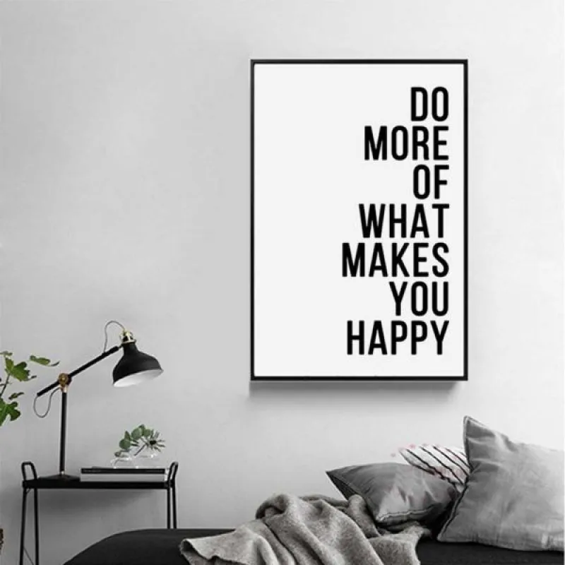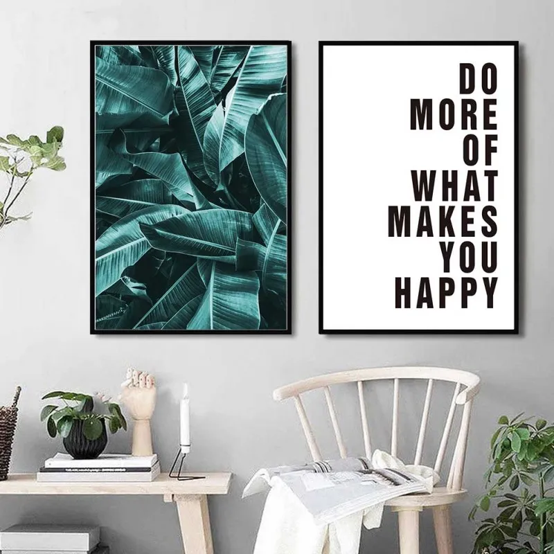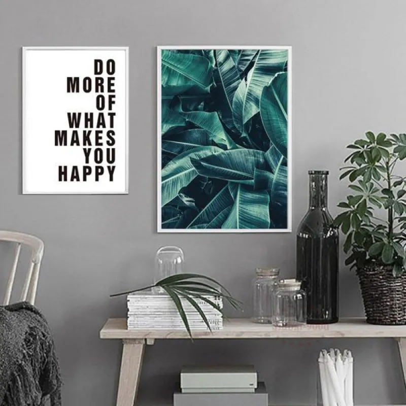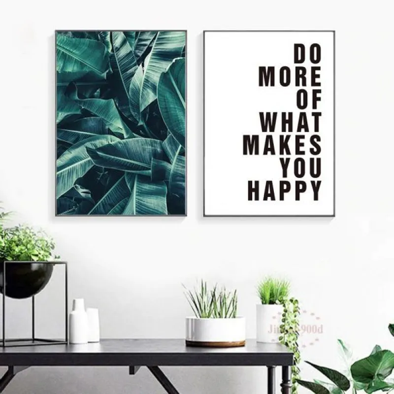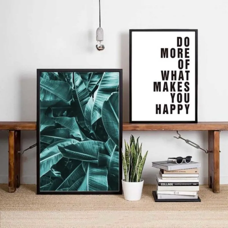 Tranh in canvas lá cây chuối mọc sát nhau kết hợp với tranh chữ Do more of what makes you happy, thích hợp treo ở phòng khách, phòng làm việc, phòng ngủ, quán cà phê, chân cầu thang, bàn học, bàn làm việc…