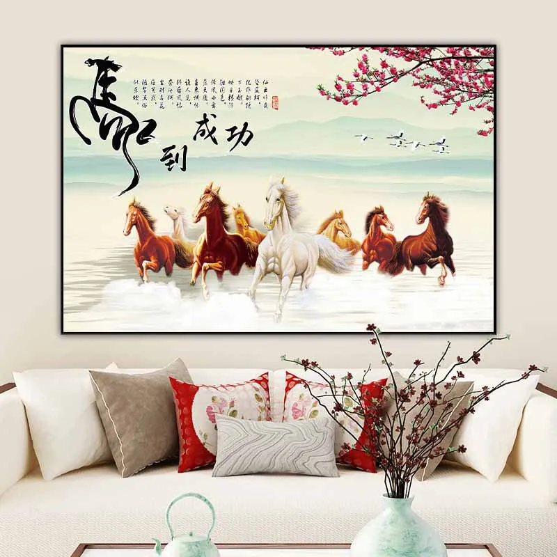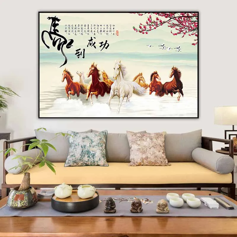 Tranh Mã đáo thành công kết hợp chữ Mã với hình tượng con ngựa