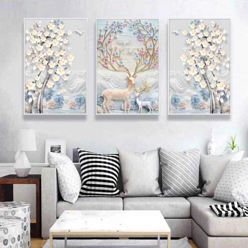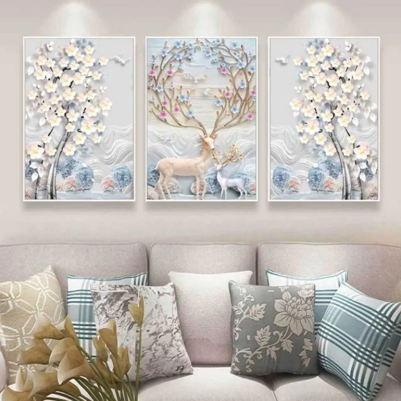 Tranh in canvas những chú nai và hươu sừng điểm đặc biệt là đầy hoa nở ở trên sừng với màu sắc nhẹ nhàng. Trong âm hán nai là lộc, đồng thời trên sừng nai đầy lá non và hoa cũng là lộc (đi hái lộc). Theo quan niệm phong thủy thì mẫu tranh này sẽ mang lại tài lộc cho gia chủ.
