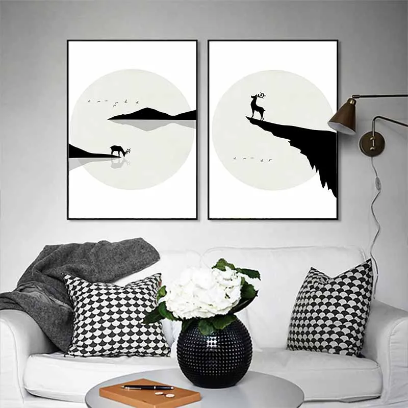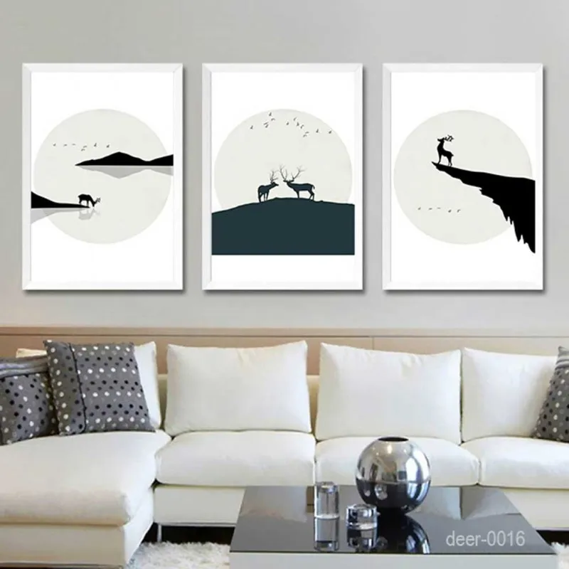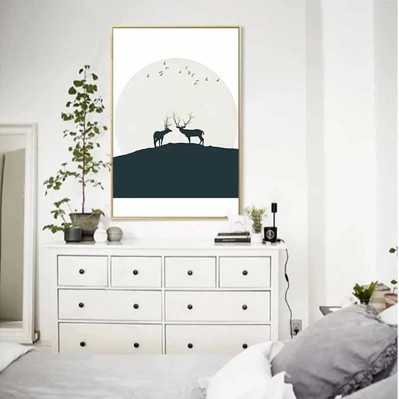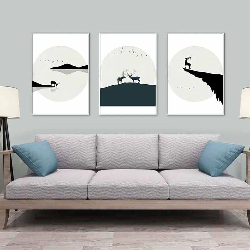 Tranh Nai trừu tượng đứng trên mỏm đá