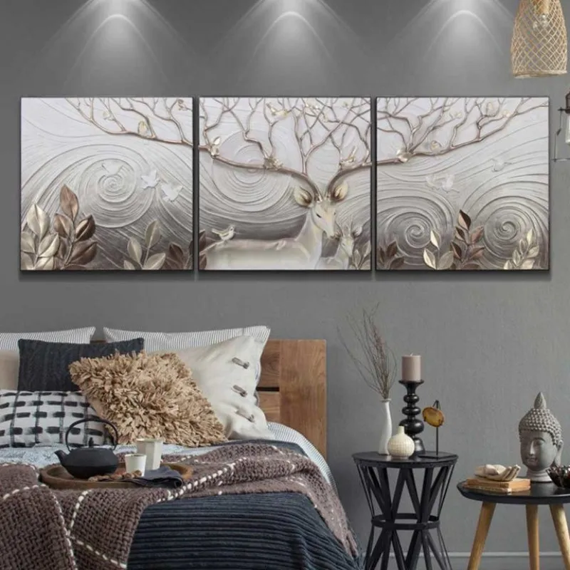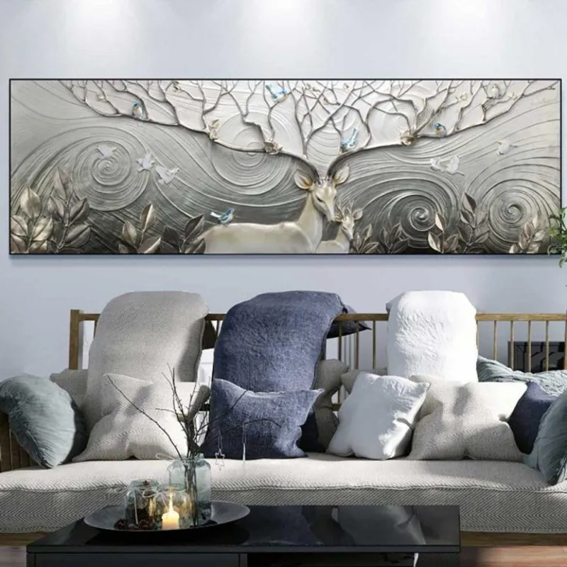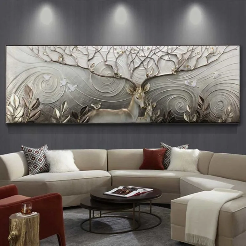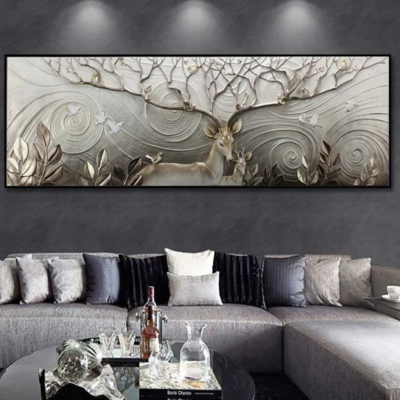 Tranh in canvas phong thủy nai hươu, bộ sừng rất lớn và đầy nhánh mọc rộng như một tán cây to. Thực tế, trong phong thủy, hươu nai vốn dĩ là loài mang biểu tượng của Tài Lộc, Thịnh Vượng, Trường Thọ.