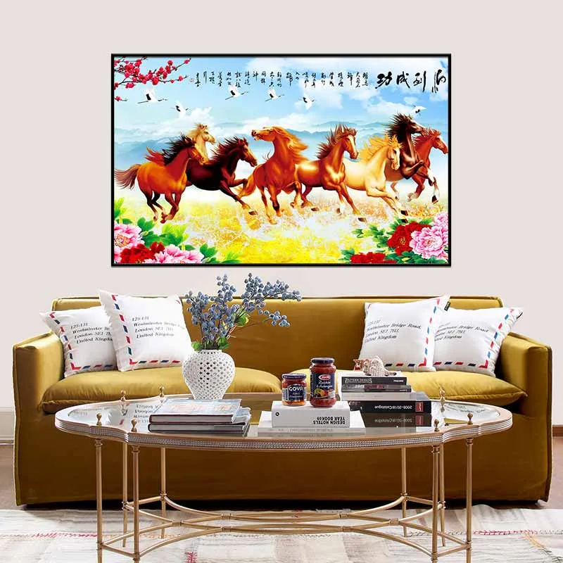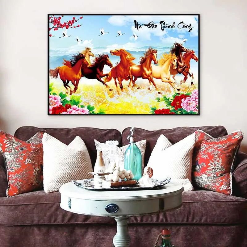 - Tranh được in trên chất liệu vải Canvas, mực dầu 6 màu nhập khẩu cho màu sắc trung thực và cực kỳ bền màu, không cần mặt kính bảo vệ, có thể vệ sinh bằng khăn ướt.