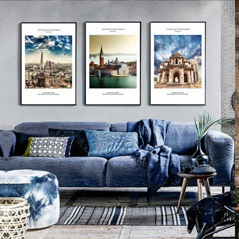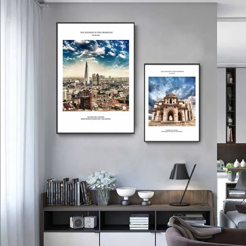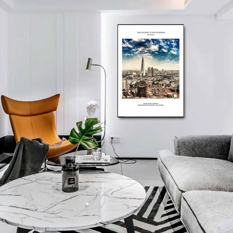 Tranh in canvas nhà thờ San Giorgio Maggiore và toàn cảnh thành phố London kết hợp chữ.